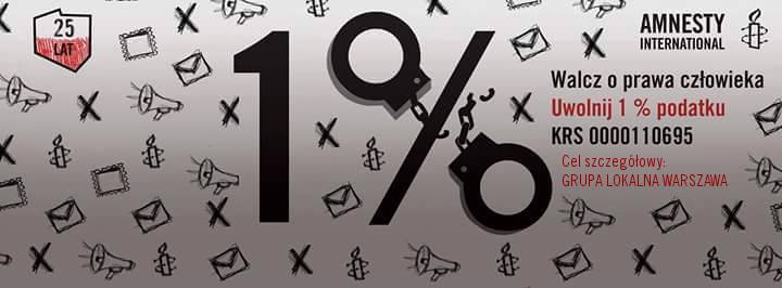 Sais-tu, qu'en donnant 1% de ton impôt sur le revenu ? l'organisation Amnesty International, tu contribues ? un monde meilleur? Entre autres, tu réduis les discriminations, tu aides ? libérer des gens accusés ? tort et tu défends les droits des femmes. Remplis la rubrique réservée de ta déclaration d'impôts avec l'information KRS 0000110695 GRUPA LOKALNA WARSZAWA, pour que nos volontaires puissent agir avec encore plus d'efficacité.