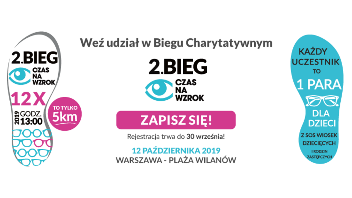 Seulement jusqu'au 30 septembre les inscriptions pour la 2ème Course de Charité Temps pour la vue sont ouvertes ! Le succès médiatique de la première édition à laquelle ont participé 1000 personnes et plus de 50 célébrités a prouvé que de telles actions en valent la peine. Tout cela pour aider les enfants dans le besoin. Les inscriptions pour la deuxième édition, organisée pendant la semaine de célébration de la Journée mondiale de la vue, sont maintenant ouvertes. Cette année, l'événement a un seul objectif : aider l'association SOS SOS Wioski Dziecięce en Pologne et les familles d'accueil. L'organisateur remettra aux enfants autant de paires de lunettes correctives que les concurrents participeront à la Course Principale. Des stars comme Anna Dereszowska, Stanisław Karpiel-Bułecka, Małgorzata et Radek Majdan, Artur Żmijewski et Paulina Chylewska ont déjà déclaré leur participation à cet événement.