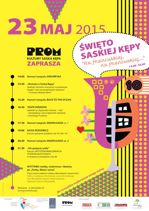 <p style="text-align: justify;">Le 23 mai 2015 aura lieu la 10ème édition de la Fête de Saska Kepa, sous le slogan "Na Francuskiej...". Du rond-point de Washington jusqu'au PROM Kultury Saska Kepa, s’étaleront des scènes et des stands, dont également le stand de la CCIFP et de Sucré.</p>