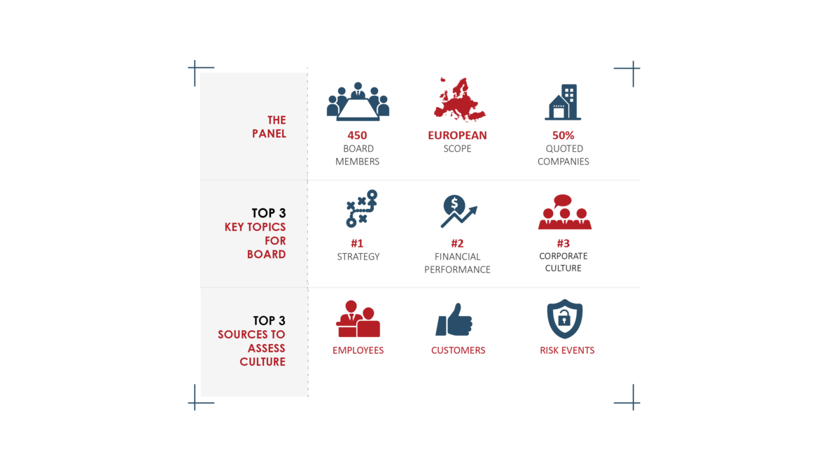 Mazars est heureux de présenter le rapport de recherche Board Leadership of Corporate Culture in Europe, rédigé en association avec Board Agenda et INSEAD. Cette recherche met en lumière le décalage entre les mots et les actes - il faut espérer que l'accent mis par le haut de l'entreprise sur le ton, en particulier dans le rôle du Président Directeur général, se répande rapidement aux membres du conseil d'administration et dans l'entreprise.
