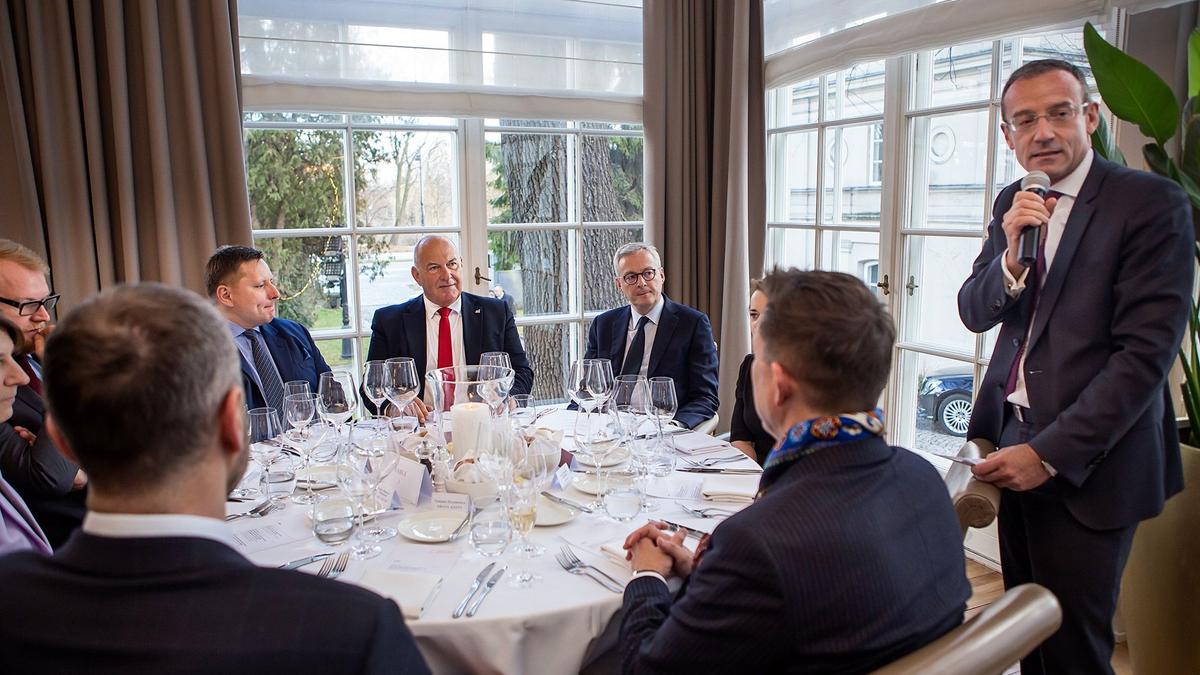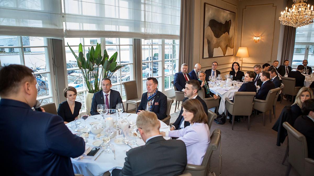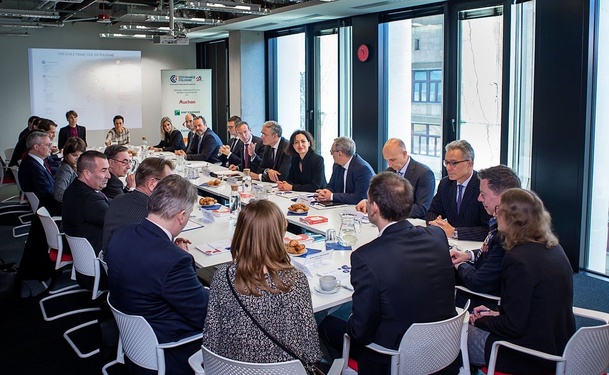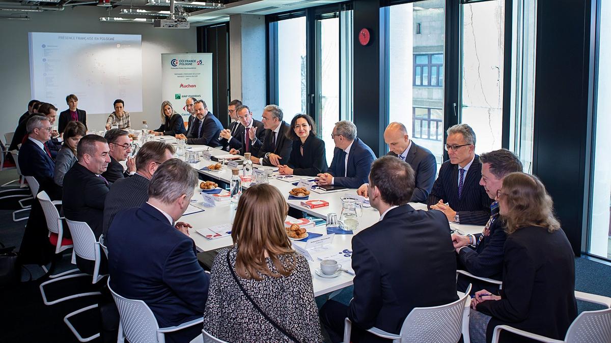 Les entretiens se sont poursuivis autout d'un dejeuner commun auquel ont participé les représentants de la délégation française : Bruno Le Maire - Ministre de l'Économie et des Finances, Elisabeth Borne - Ministre de la Transition écologique et solidaire, et les représentants du gouvernement polonais et des entreprises polonaises, parmi lesquels Jadwiga Emilewicz - Ministre du développement, Michał Kurtyka - Ministre du climat, Tadeusz Kościński - Ministre des finances, et les dirigeants des entreprises telles que KGHM, PZG, Grupa Azoty, LOT, Naval Group, ainsi que des entreprises françaises et des partenaires stratégiques de la CCIFP : Orange Polska, BNP Paribas Bank Polska, Carrefour Polska, Wyborowa Pernod Ricard ou Auchan Polska.