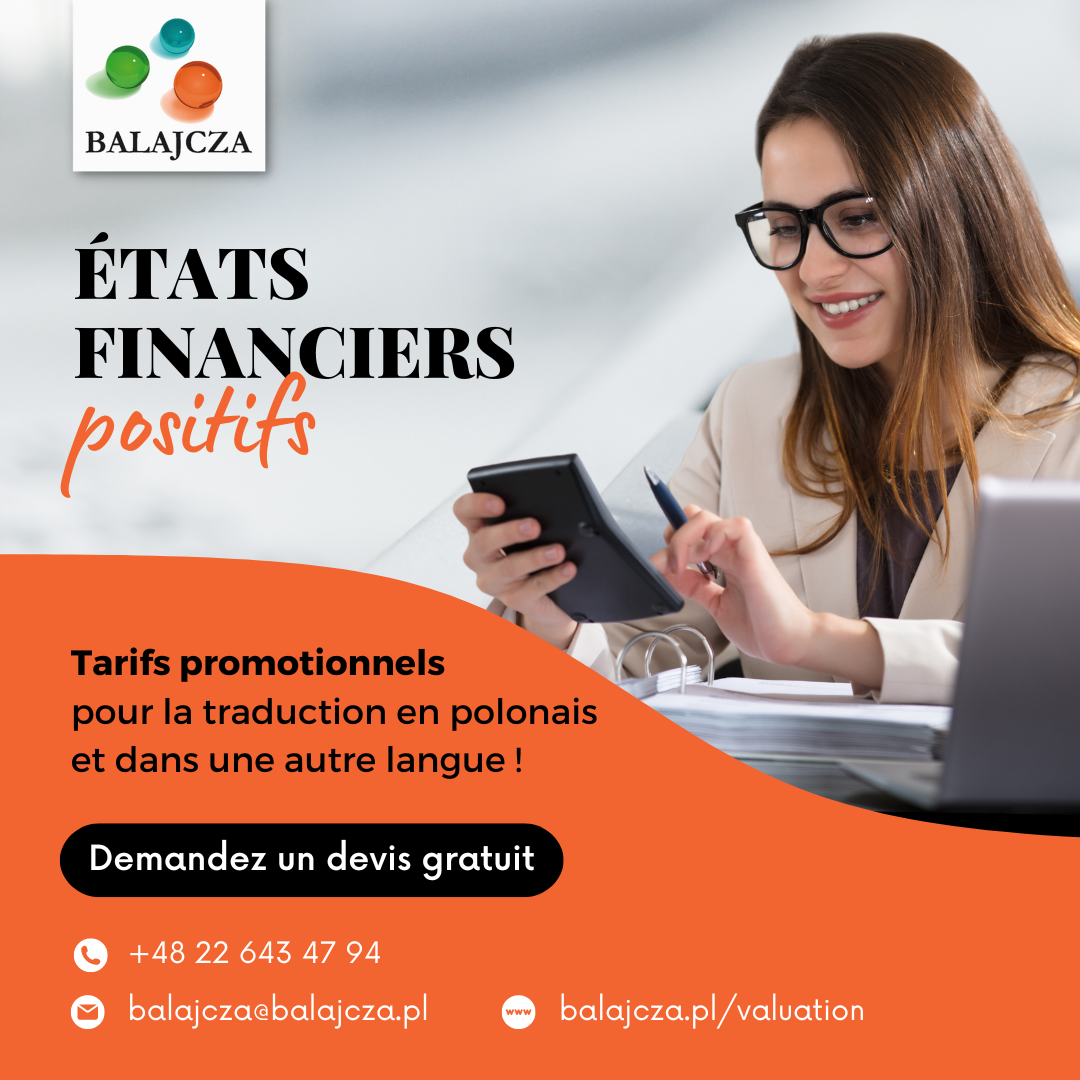 Il s’agit d’une opportunité de traduire des documents financiers en polonais ou dans une autre langue à un prix exceptionnellement réduit.