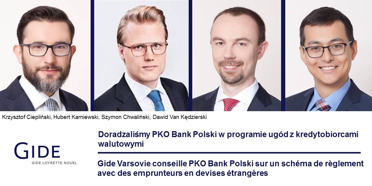 Gide Varsovie conseille PKO Bank Polski sur un schéma de règlement avec des emprunteurs en devises étrangères.