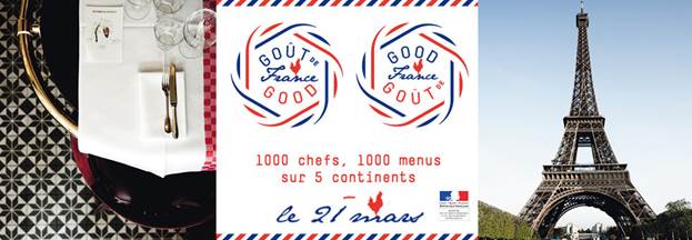 <p style="text-align: justify;">1500 chefs, 1500 menus, 150 ambassades sur 5 continent… 1 dîner pour célébrer la cuisine française autour du monde. Fort du succès de sa première édition, Goût de / Good France est réitéré en 2016, le 21 mars prochain, avec la volonté que l’événement devienne pérenne chaque printemps.</p>