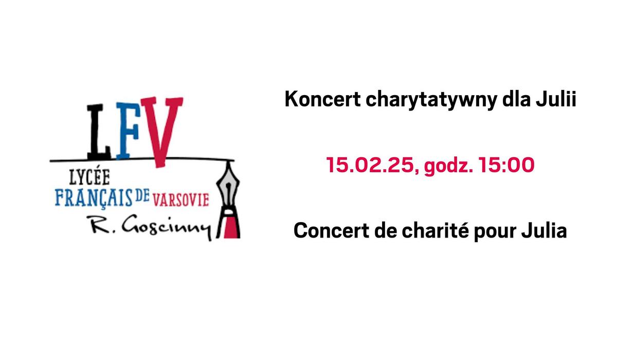 Un « Concert pour Julia » est organisé par le Lycée Français de Varsovie le samedi 15 février à partir de 15h, au cours duquel des fonds seront collectés pour la réhabilitation de Julia Koch, ancienne élève du Lycée Français de Varsovie. L'entrée est gratuite. VENEZ NOMBREUX !