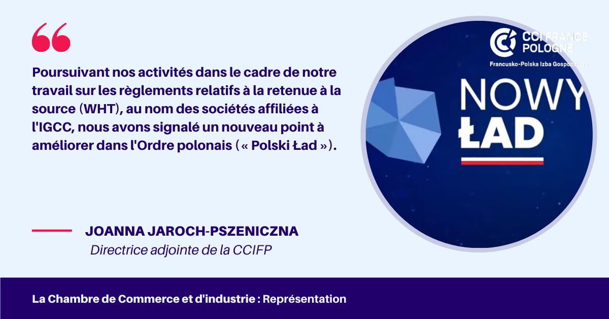 Poursuivant nos activités dans le cadre de notre travail sur les règlements relatifs à la retenue à la source (WHT), au nom des sociétés affiliées à l'IGCC, nous avons signalé un nouveau point à améliorer dans l'Ordre polonais (« Polski Ład »). Le document a été préparé par Monika Lewandowska, du CRIDO, qui supervise le sujet WHT depuis octobre 2018.