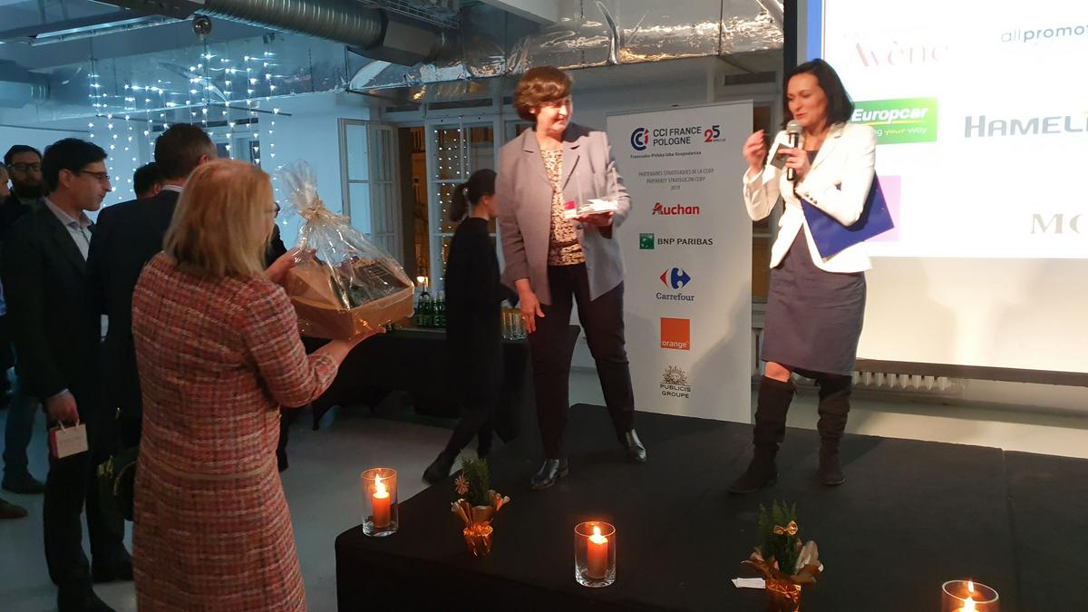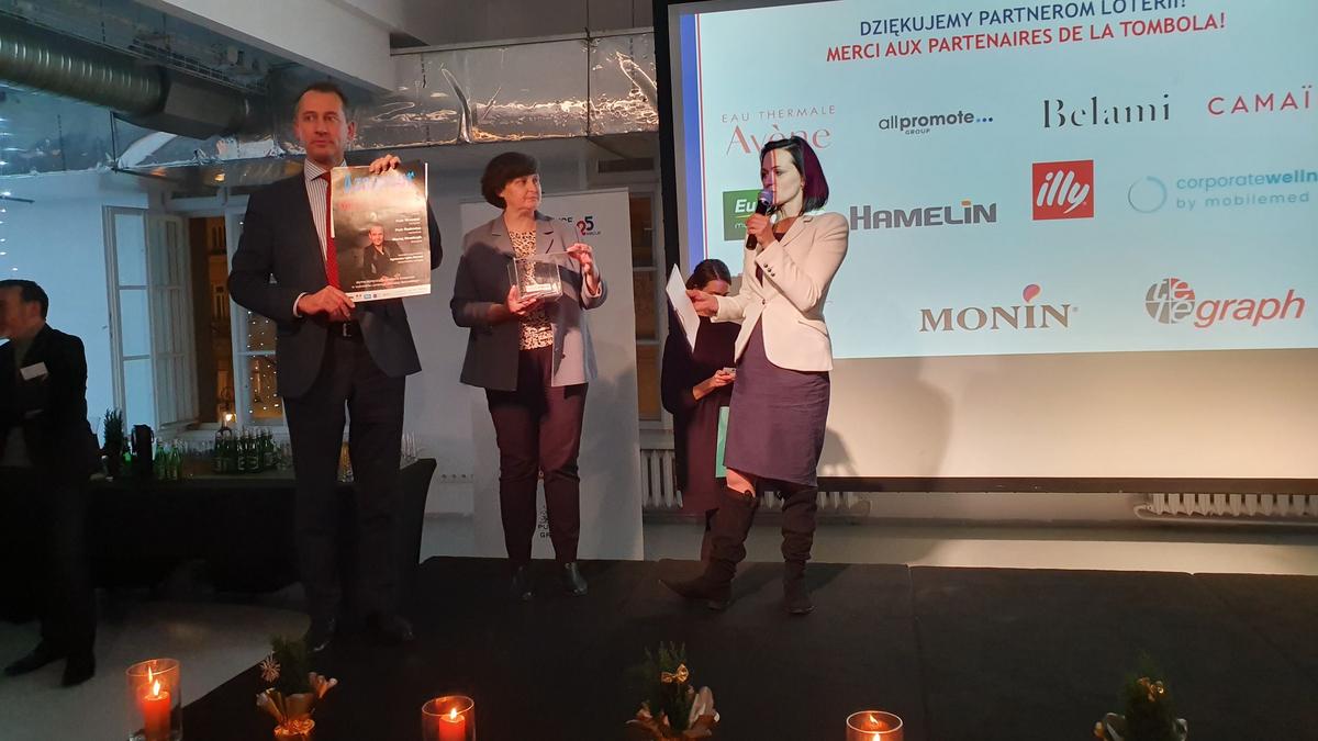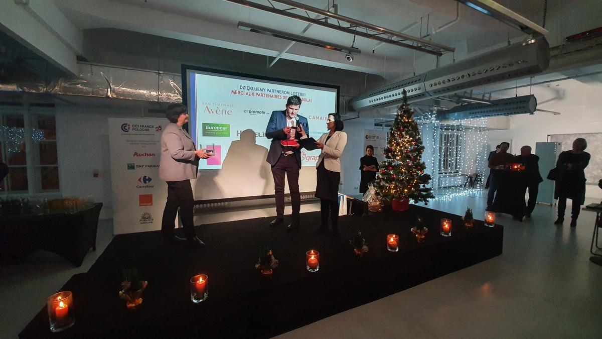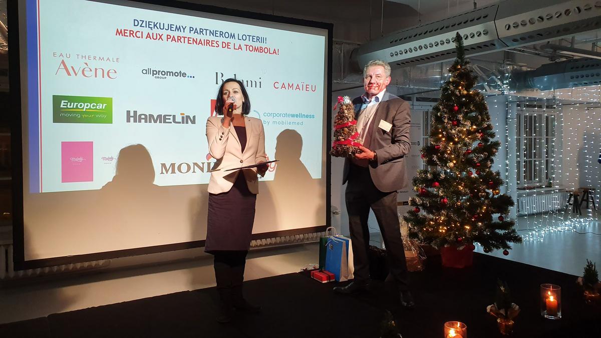 L'occasion de remettre ce prix était une réunion de Noël de la Chambre, à laquelle ont participé près de 120 représentants des entreprises franco-polonaises. Avec les chants de Noël et les plats de Noël, les membres de la CCIFP pourraient se souhaiter bonne chance pour l'année à venir et établir de nouvelles relations. Sur le stand préparé par Mobile Med, vous avez pu vous détendre lors d'un court massage effectué sur place par des masseurs professionnels. L'entreprise Mellody a présenté ses produits, c'est-à-dire de délicieux macarons, et le distributeur de café Illy a proposé du café aromatique. Les participants pouvaient également soutenir l'activité de la Fondation Tęczowy Dom en achetant une des décorations de Noël préparées par les soins de la Fondation. A la fin de la soirée, une traditionnelle loterie de cartes de visite a été organisée, avec des prix offerts par des partenaires : All Promote, Pierre Fabre et Avene, Belami, Camaïeu, Europcar, Hamelin, Melody, Monin, Telegraph.