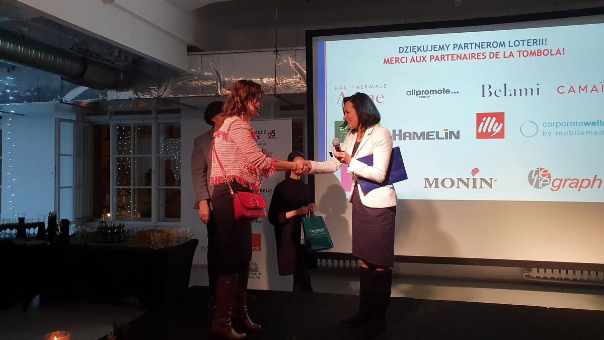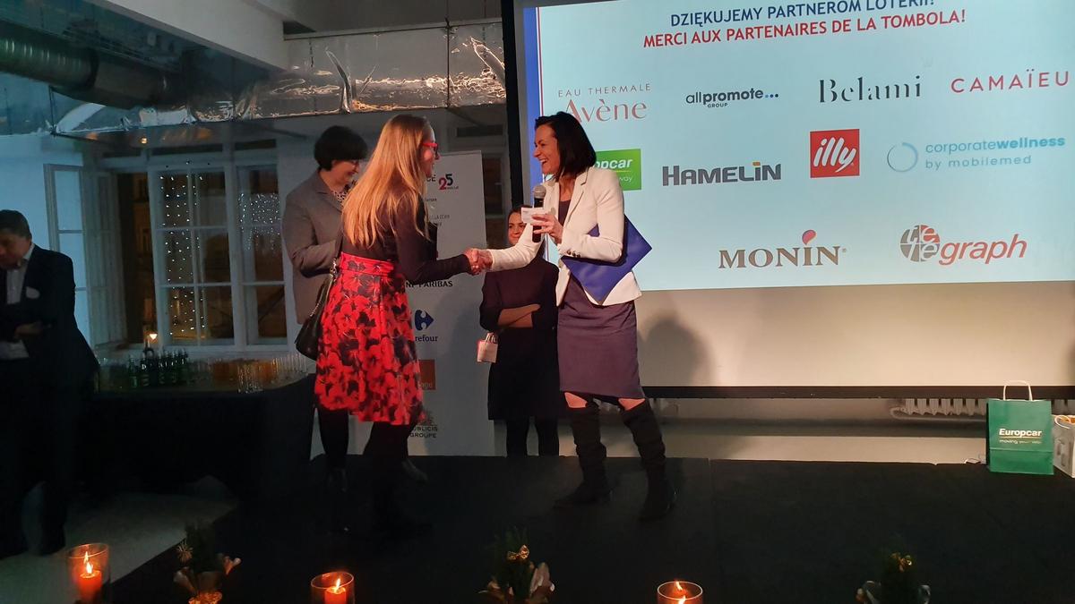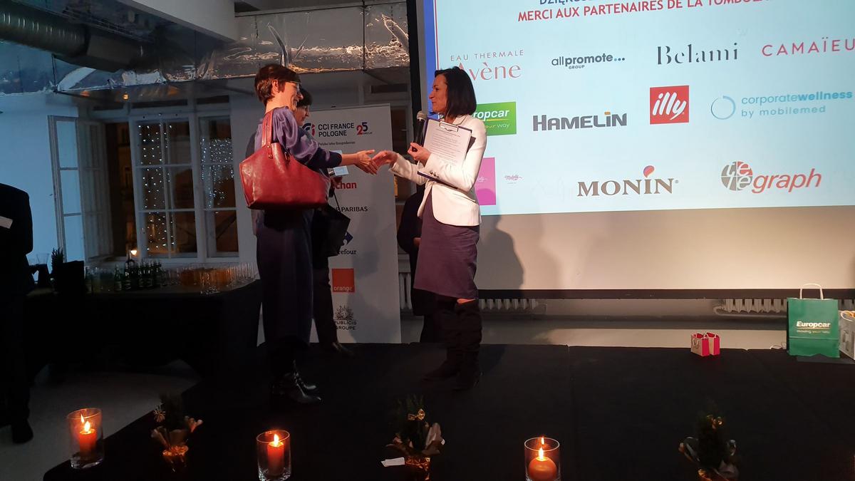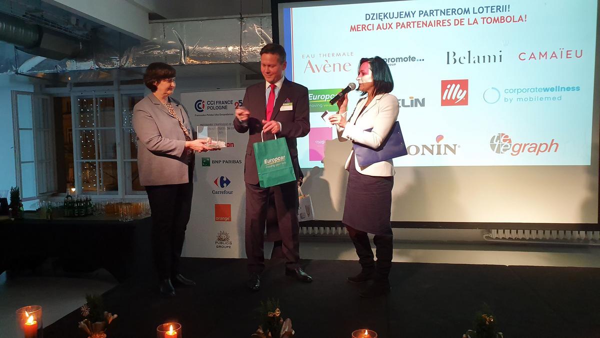 L'occasion de remettre ce prix était une réunion de Noël de la Chambre, à laquelle ont participé près de 120 représentants des entreprises franco-polonaises. Avec les chants de Noël et les plats de Noël, les membres de la CCIFP pourraient se souhaiter bonne chance pour l'année à venir et établir de nouvelles relations. Sur le stand préparé par Mobile Med, vous avez pu vous détendre lors d'un court massage effectué sur place par des masseurs professionnels. L'entreprise Mellody a présenté ses produits, c'est-à-dire de délicieux macarons, et le distributeur de café Illy a proposé du café aromatique. Les participants pouvaient également soutenir l'activité de la Fondation Tęczowy Dom en achetant une des décorations de Noël préparées par les soins de la Fondation. A la fin de la soirée, une traditionnelle loterie de cartes de visite a été organisée, avec des prix offerts par des partenaires : All Promote, Pierre Fabre et Avene, Belami, Camaïeu, Europcar, Hamelin, Melody, Monin, Telegraph.