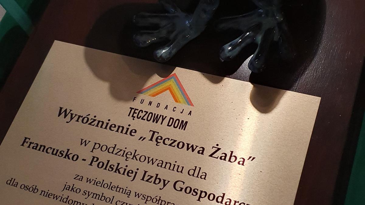 Nous aimerions remercier la Fondation Tęczowy Dom pour la merveilleuse distinction de la Grenouille arc-en-ciel et nous promettons de continuer à soutenir leurs activités pendant de nombreuses années pour aider les personnes aveugles souffrant de handicaps multiples.