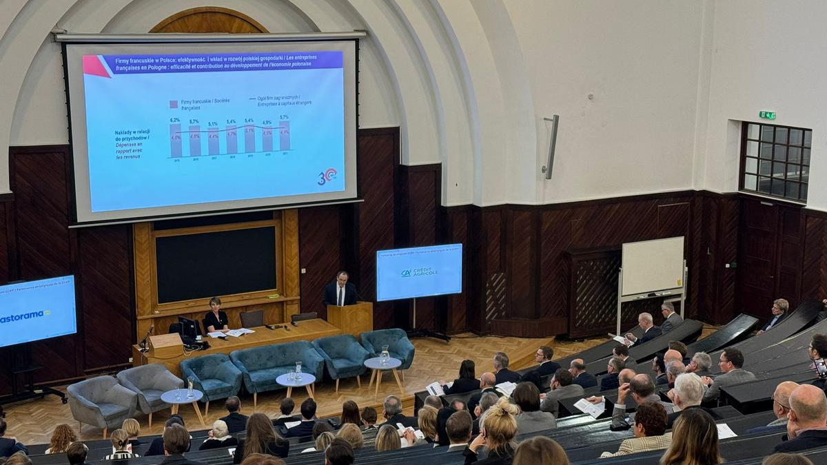 À l'occasion du 30e anniversaire de la Chambre, nous avons préparé, en collaboration avec l'Institut de débat d'éxpert et d'analyse Quant Tank, dirigé par le professeur Stanisław Kluza de la Haute École de Commerce de Varsovie, un rapport sur l'apport des investissements français sur l'économie polonaise. Au cours de la réunion, après une présentation du bilan et des projets de la CCIFP, nous avons présenté les principales conclusions du rapport, suivies d'un débat sur l'avenir de la coopération et du partenariat stratégique franco-polonais.