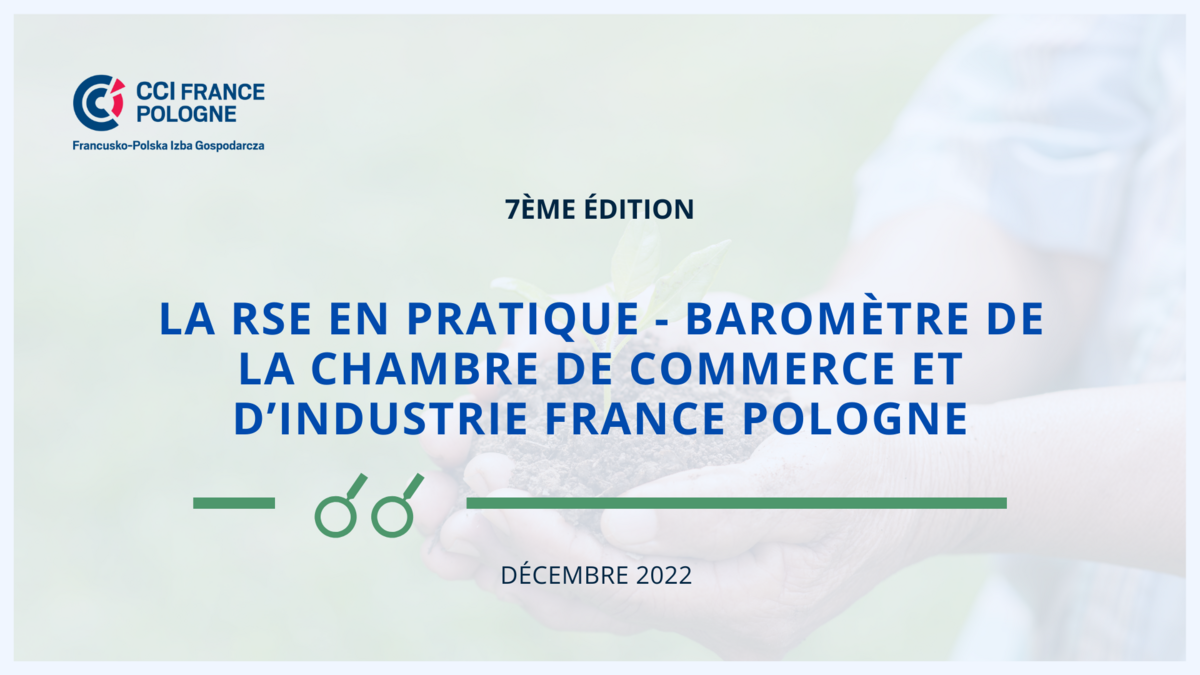 L'enquête CSR en pratique - le baromètre de la Chambre de commerce France-Polognea été réalisée auprès des entreprises polonaises et étrangères opérant en Pologne en novembre 2022. 113 organisations ont participé. Une enquête complémentaire auprès des consommateurs a été réalisée en même temps selon la méthode CAWI sur un échantillon de 1 066 Polonais adultes par HAVAS MEDIA GROUP POLSKA.