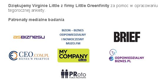 Nous remercions très cordialement tous ceux qui ont participé ? notre enquête et ont partagé leurs pratiques. Nous invitons tous ? la lecture du rapport ? La RSE en pratique – le baromètre de la Chambre de Commerce et d'Industrie France Pologne ?.