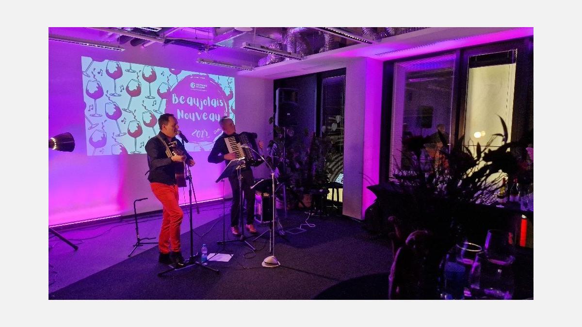 Mardi soir, dans une ambiance française assurée entre autres par les sons de guitare et d'accordéon de Chris Schittulli et Wiesław Prządek, en écoutant non seulement des plus belles chansons françaises, mais aussi de nouveaux arrangements de chansons polonaises, nous nous sommes réunis pour fêter ensemble et pour déguster - selon les participants - un très savoureux jeune vin du Beaujolais.