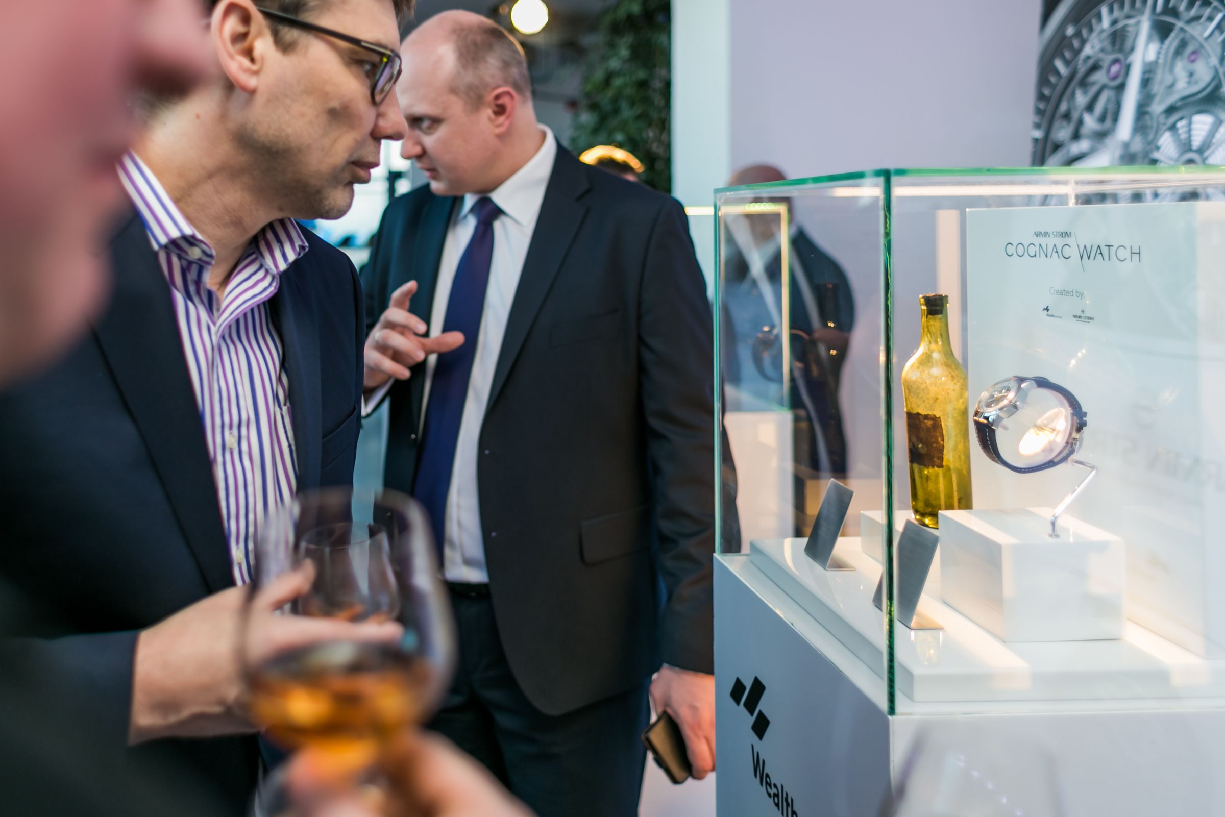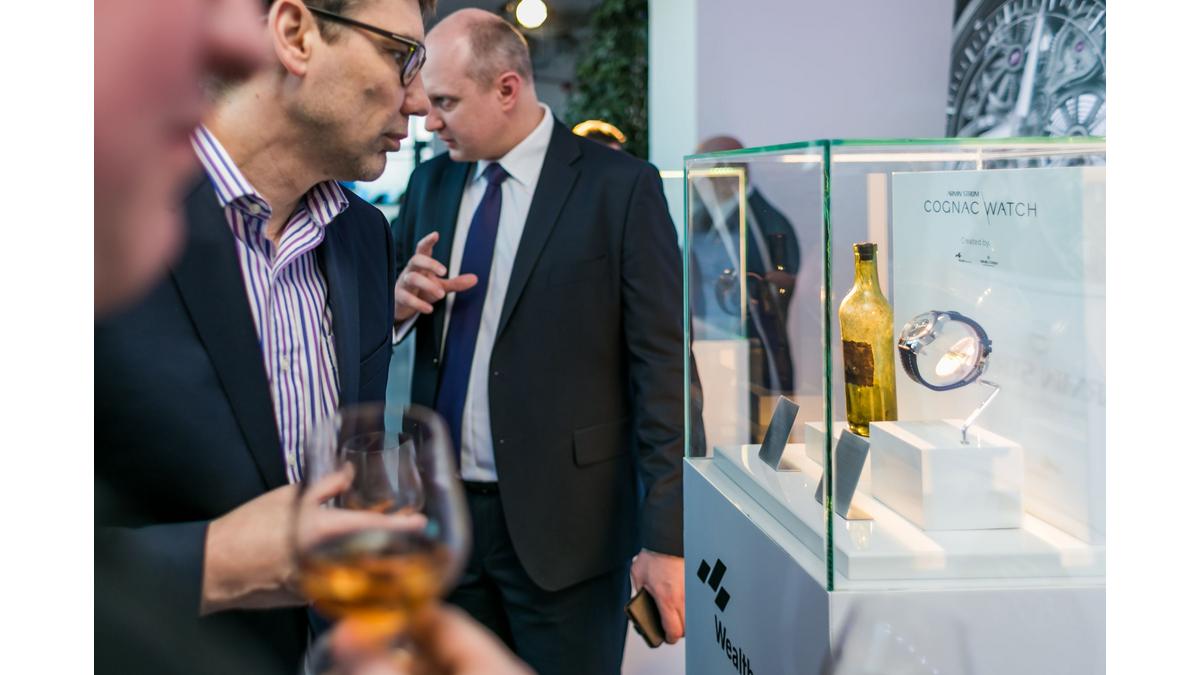 Grâce ? cette coopération naquit la Cognac Watch - la première montre mécanique suisse contenant une goutte d'alcool. La montre et la capsule destinées ? ce breuvage unique ont été conçues par Claude Greisler, l'horlogiste en chef d'Armin Strom. Ce fabricant suisse indépendant a également accepté de se charger de la production de cette montre inhabituelle. L'édition limitée exclusive pour Wealth Solutions se composait de seulement 40 exemplaires produits en acier inoxydable, en or rose 18 carats et avec boîtiers en titanium. Tous on été vendus par Wealth Solutions lors d'une prévente exclusive avant le lancement officiel du produit. L'avant-première internationale de la Cognac Watch se déroula le 20 mars 2016, lors du salon Baselworld. Hier, lors de l'avant-première polonaise ? Varsovie, Wealth Solutions a annoncé la décision de Guinness World Records.