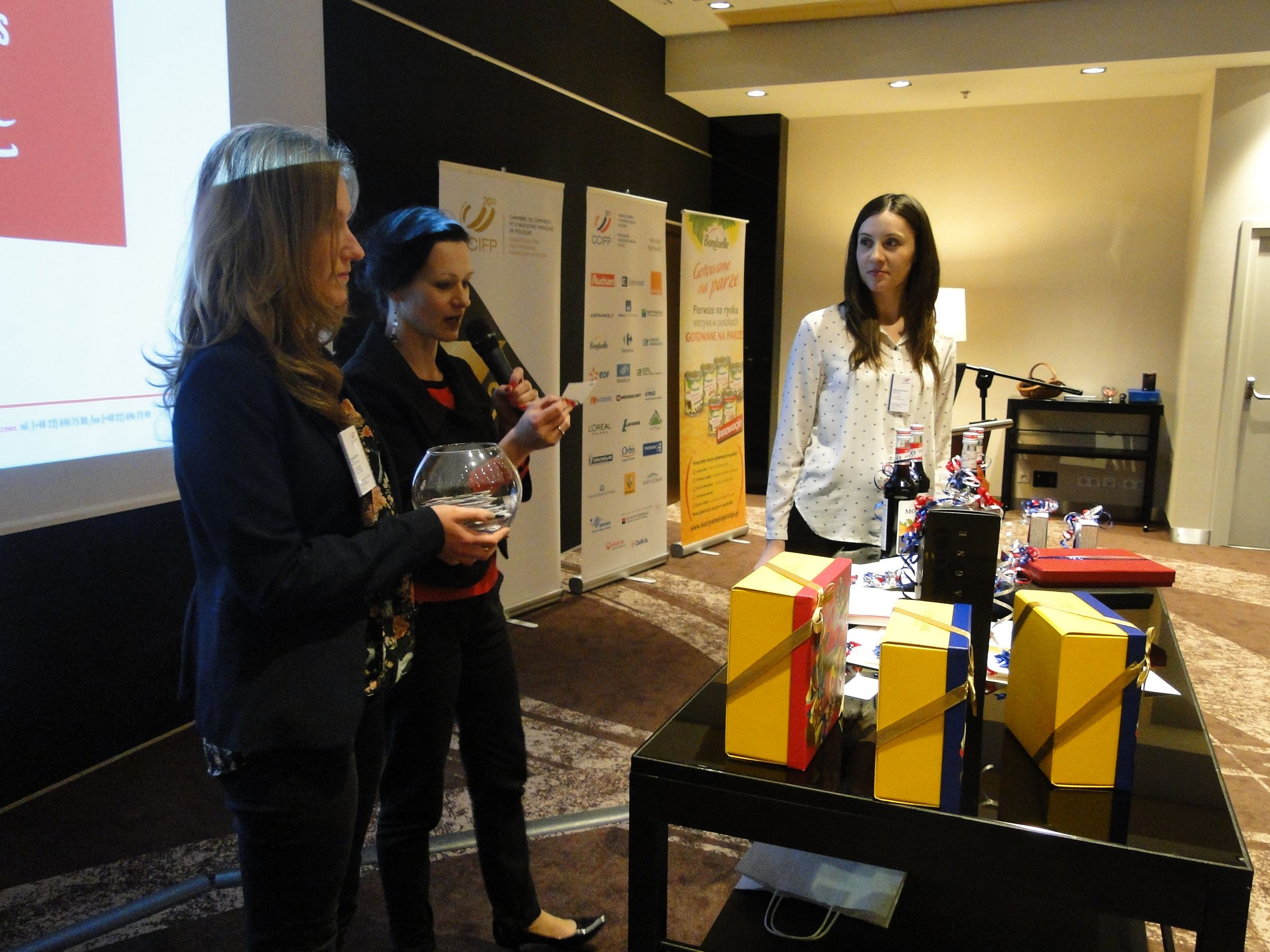 En plus des partenaires de la loterie, la CCIFP a également reçu un soutien important de la part des sociétés Bonduelle Pologne et Galeries Lafayette ? Paris, qui ont offert des cadeaux de Noël pour tous les participants de la soirée. Chaque invité a reçu ? la sortie un ensemble de légumes Bonduelle, ainsi qu'un sac de shopping très chic des Galeries Lafayette, avec un coupon de 10% de reductions sur les achats dans le réseau des magasins Galerie Lafayette et un coupon offrant un verre de champagne dans le restaurant parisien Vue sur Coupole, au 40, boulevard Haussmann, 75009 Paris.