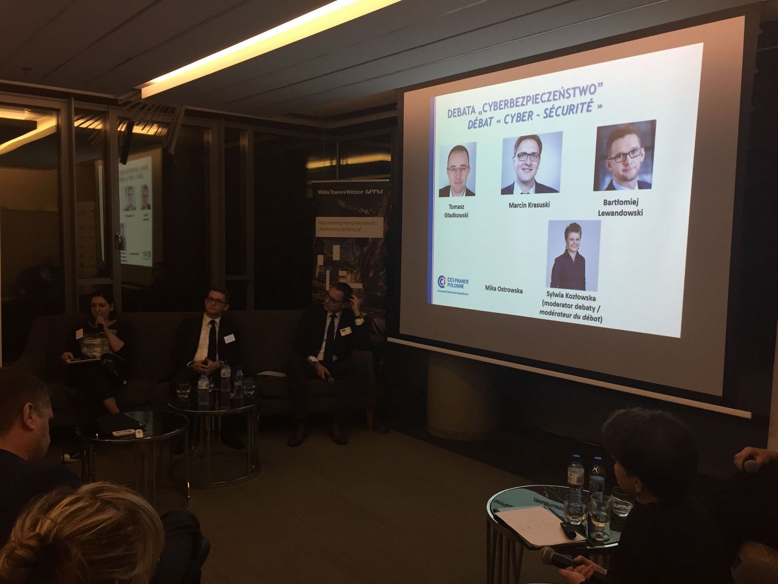 Sylwia Kozłowska, Directrice du Département des Assurances Civiles chez Willis Towers Watson, a inauguré le débat sur la cybersécurité en présentant la situation actuelle et les enjeux pour les entreprises. Tomasz Gładkowski, PDG de la société Eversys a souligné, qu’actuellement chaque entreprise peut devenir cible des hackers. Leurs motifs sont différents : volonté de s’enrichir, faire le chaos, mais également de baisser les actif d’une société et de sa valeur, afin de permettre aux concurrents de l’acheter ? bon prix. Mika Ostrowska, Responsable du Département des Operations de Sécurité chez Orange a dit que par rapport ? l’année précédente on observe la croissance des cyberattaques de plus de 200%. C’est l’effet du développement technologique et des nouvelles méthodes utilisées par des hackers. M. Marcin Krasuski, Head of Digital Practice chez CEC Government Relations a souligné le rôle des nouveaux règlements relatifs ? la cybersecurité, notamment le dispositif de l’UE qui oblige des administrateurs des données ? informer, en cas d’infraction, non seulement l’administration publique mais également les personnes physiques dont les données pouvait être utilisées de manière illégale. Bartłomiej Lewandowski, Cyber Practice Leader chez Colonnade, ? son tour a dit que les compagnies d'assurance proposent déj? des solutions qui peuvent amortir les effets néfastes des cyberattaques. Le marché polonais des assurances cybernétiques est proche du marché espagnole – la conscience du problème auprès des entrepreneurs est en croissance, ce qui se traduit par la plus grande popularité de tels types d’assurances dans le business.