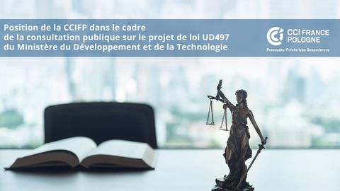 La Chambre de Commerce Franco-Polonaise a été invitée à participer à la consultation publique du projet de loi sur les amendements à certaines lois n° UD497 par le Ministère du Développement et de la Technologie (MRiT). Le 4 mai, la CCIFP, agissant au nom des entreprises membres, a soumis au MRiT un document de position contenant des commentaires et des remarques sur les réglementations juridiques présentées, qui reflètent la voix de la communauté d'affaires polonaise et française. Le document a été supervisé par uneéquipe de juristes du cabinet Wardyński & Wspólnicy, dirigée par Anna Olejniczak-Michalska et Radosław Wiśniewski.