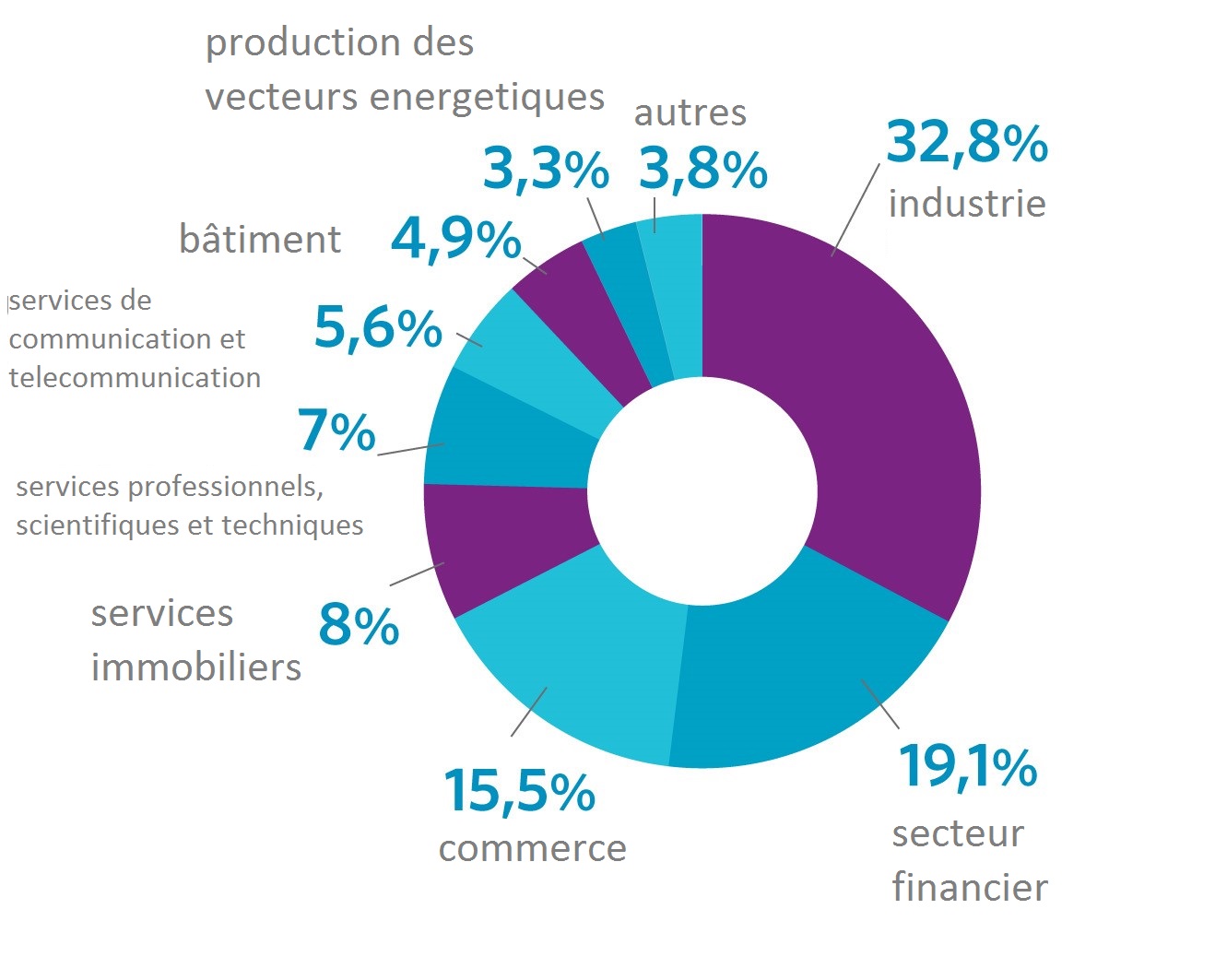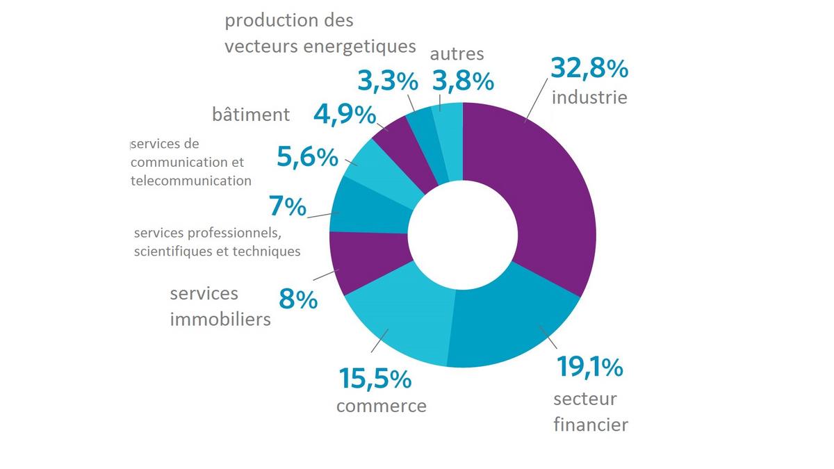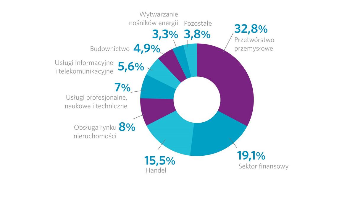 Figure 2. les IDE investis dans les industries ? la fin de 2015. (Source: Banque Nationale de Pologne)