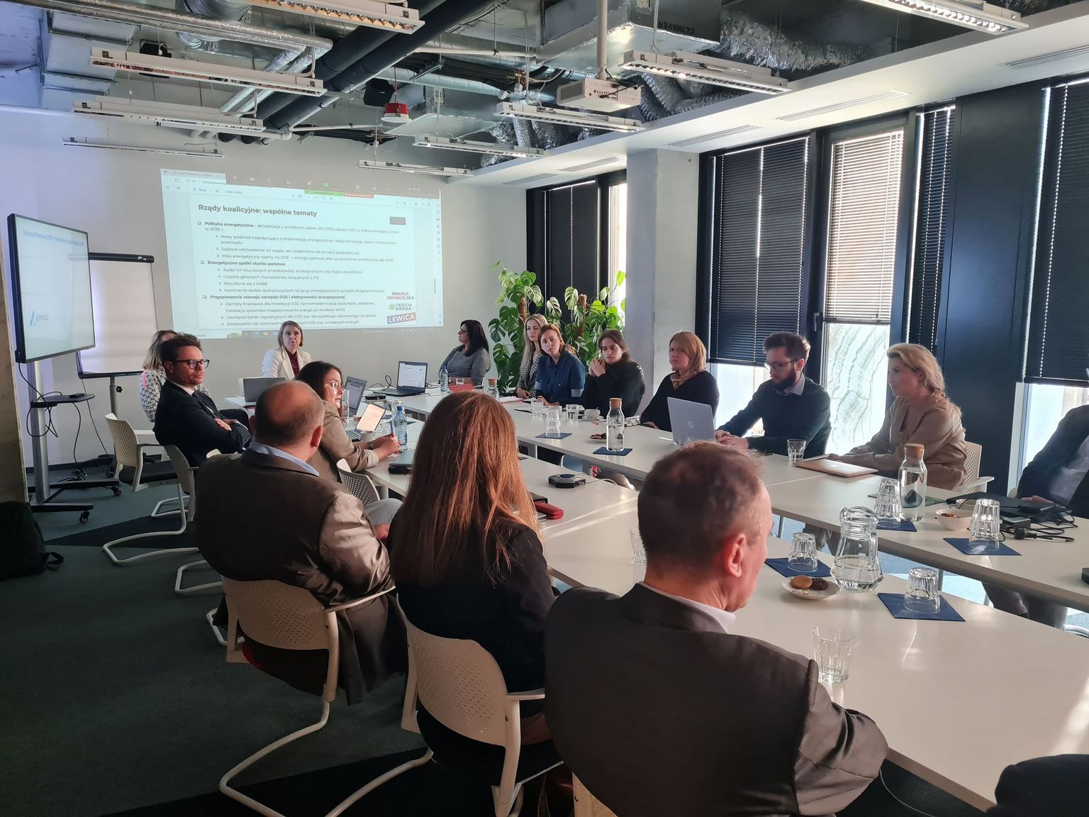 Les invités spéciaux de la réunion étaient des représentants du groupe CEC : Przemysław Hofman, directeur du département Sustainability & Manufacturing et Monika Serżysko, Senior Consultant Sustainability & Manufacturing. Ils ont résumé la situation après les élections parlementaires, analysé les résultats des élections et les procédures post-électorales pour former un nouveau gouvernement. La réunion a été l'occasion de réfléchir à ce que pourrait être la politique énergétique d'un gouvernement de coalition. Les experts de CEC Group ont résumé les questions clés liées au secteur de l'énergie, à la transition énergétique et à la décarbonisation qui seront au cœur d'un gouvernement de coalition. Les entreprises publiques du secteur de l'énergie étaient également à l'ordre du jour, ainsi que les mesures à prendre pour développer les SER et les outils d'efficacité énergétique dans le contexte de la suppression des barrières réglementaires.