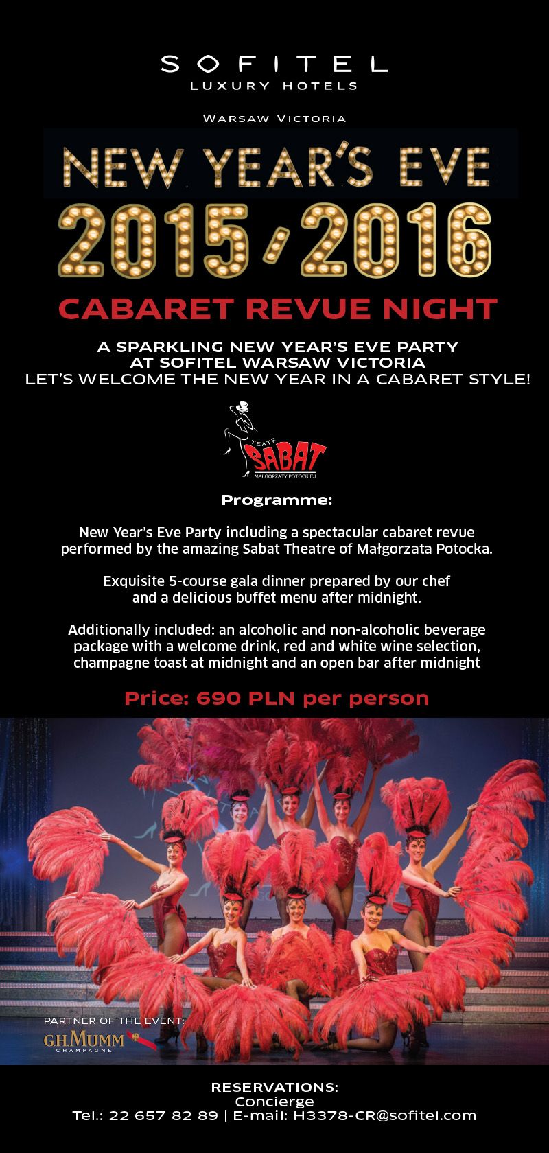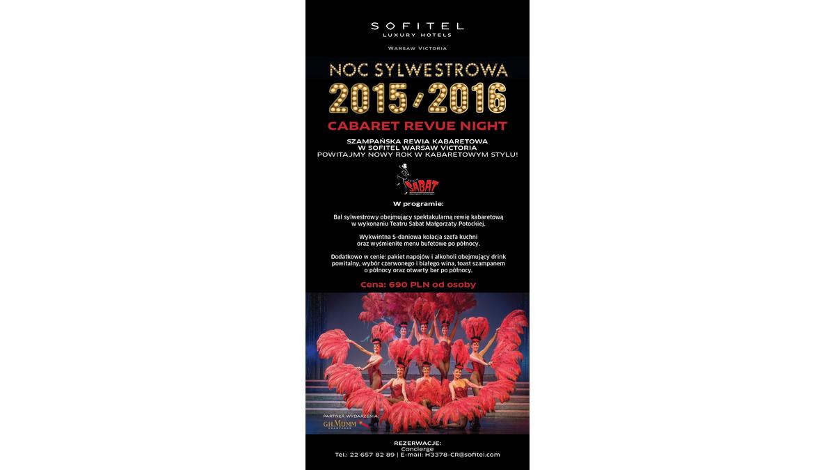 <p>Nous vous invitons à la pétillante fête de la Saint Sylvestre au Sofitel Warsaw Victoria. Accueillez le Nouvel An 2016 avec un cabaret d’un style exceptionnel et une parade spectaculaire orchestrée spécialement pour cette occasion par Małgorzata Potocka et le Théatre Sabat pour nos invités.</p>