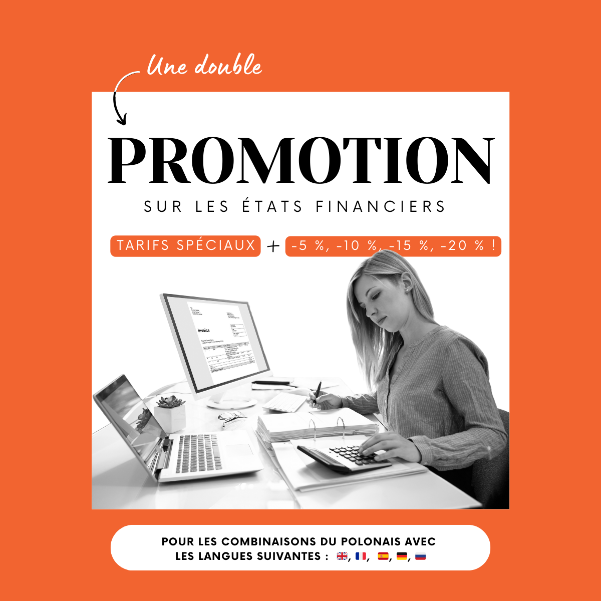 Premièrement – les tarifs spéciaux pour la traduction des états financiers.