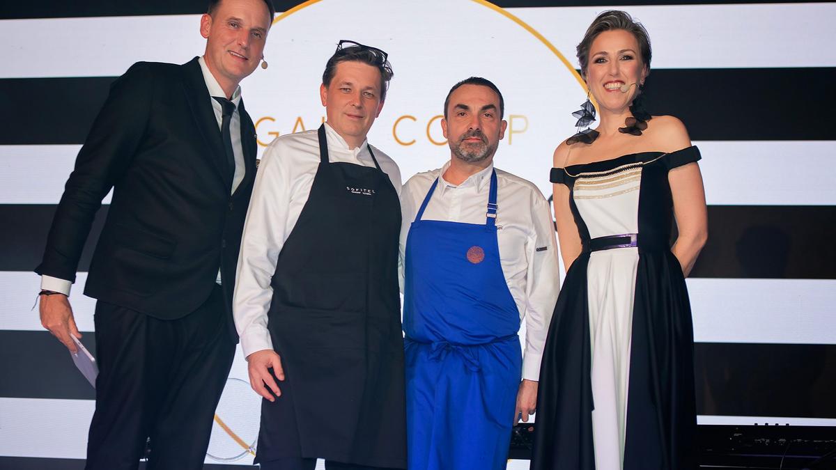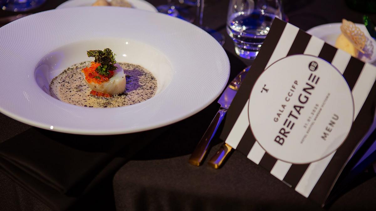 Le dîner, conçu par le chef doublement étoilé Ronan Kervarrec, chef du restaurant Maison Ronan Kervarrec à Saint-Grégoire près de Rennes, et Paweł Kałuski, chef de La Brasserie Moderne et de l’hôtel Sofitel Warsaw Victoria, a offert un véritable voyage culinaire en Bretagne. Le menu comprenait :