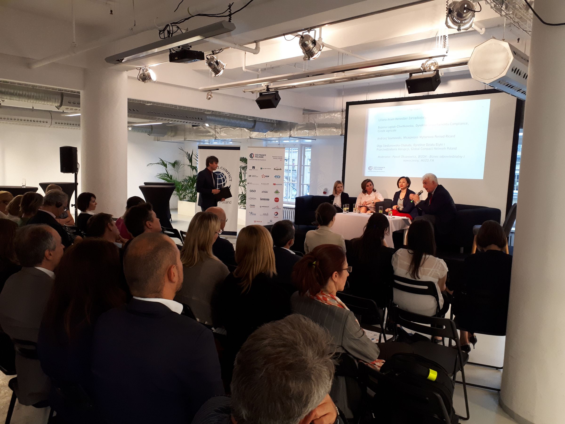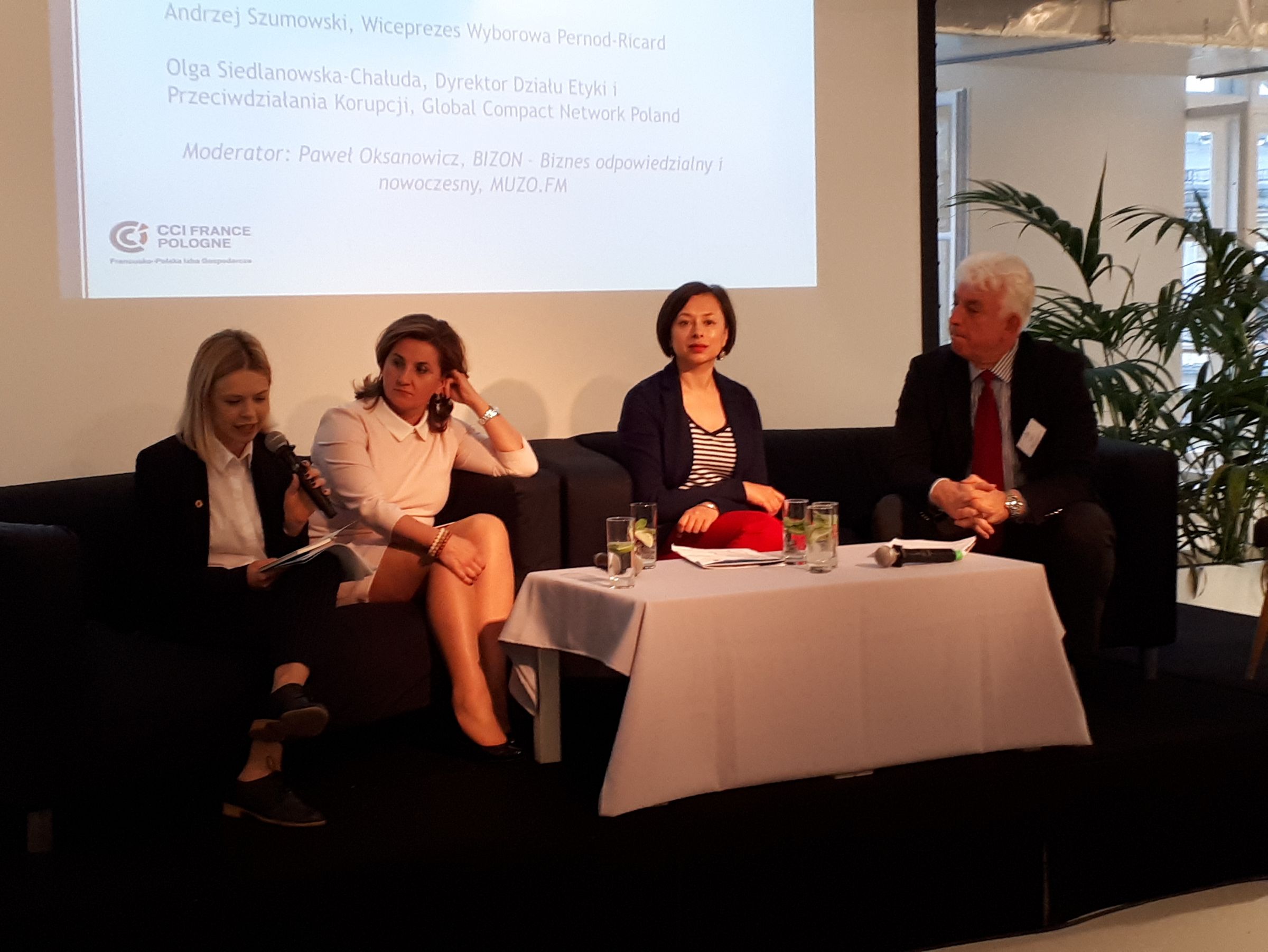 La présentation a été suivie par le débat avec la participation de : Liliana Anam Directrice Générale de CSRinfo, Bożena Łapiak-Chwiłkowska, Directrice du Departement Compliance, Credit Agricole, Andrzej Szumowski, Vice-Président de Wyborowa Pernod-Ricard et Olga Siedlanowska-Chałuda, Directrice du département d’éthique et la lutte contre la corruption, Global Compact Network Poland. Il a été animé par Paweł Oksanowicz, journaliste et auteur de l’émission BIZON – biznes odpowiedzialny i nowoczesny ? la radio MUZO FM.
