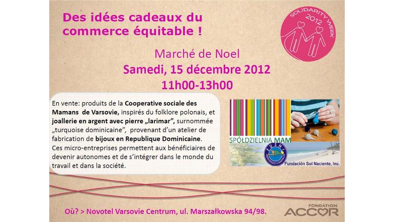 Des idées cadeaux du commerce équitable ! Nous vous invitons au Marché de Noel Samedi, 15 décembre 2012 11h00-13h00 organisé par Fondation Accor. En…