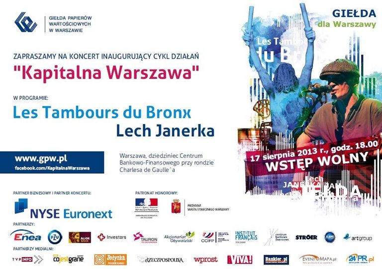 Giełda Papierów Wartościowych w Warszawie zaprasza na koncert inaugurujący cykl działań "Kapitalna Warszawa". 17 sierpnia o godz. 18.00 wystąpią Les…