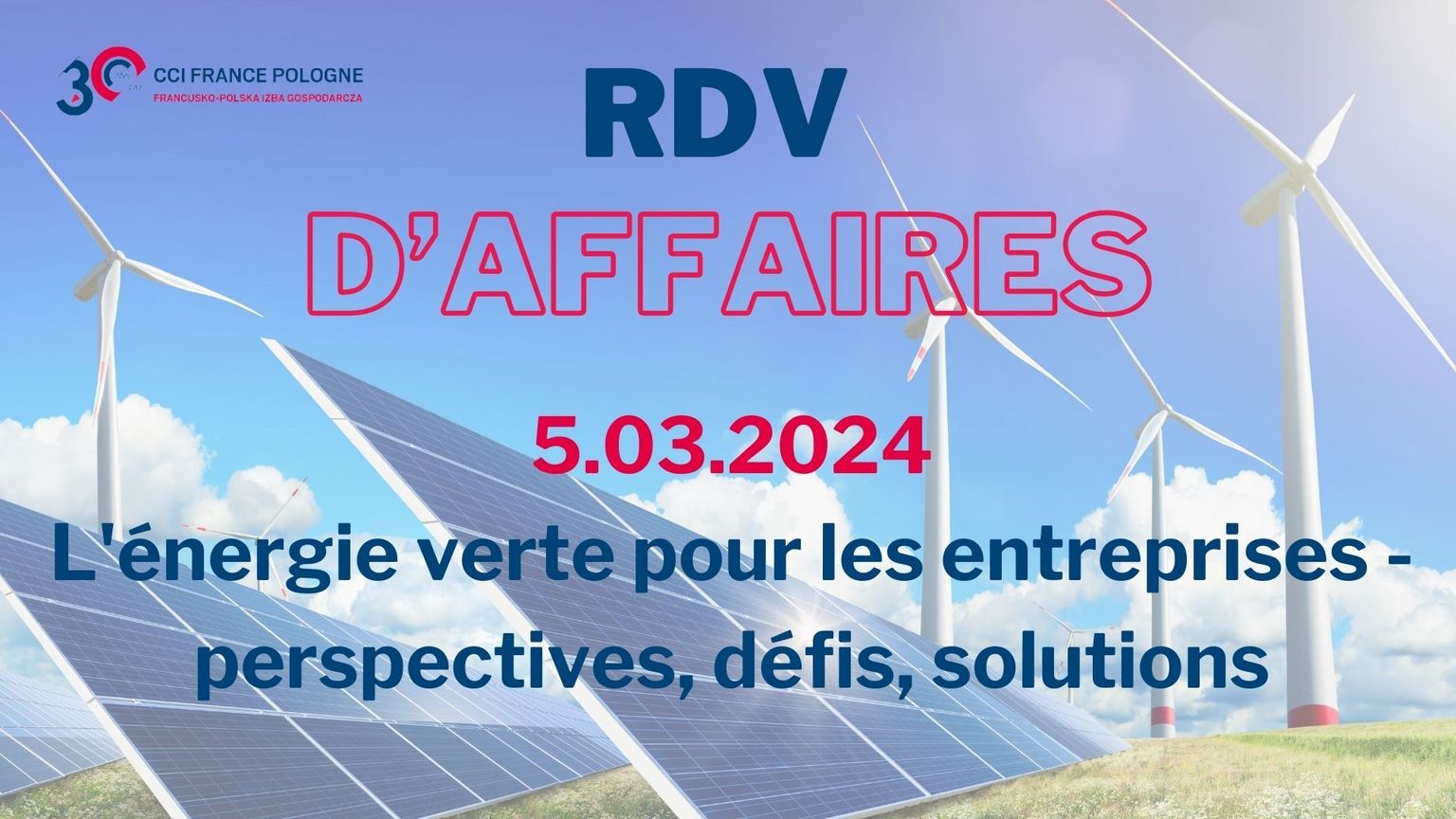 La nécessité de transformer le secteur de l'énergie en Pologne est évoquée depuis de nombreuses années. La transition vers des sources à faible teneur en carbone est nécessaire non seulement pour le bien de la planète et des générations futures, mais aussi pour maintenir un taux de croissance élevé et faire en sorte que la Pologne continue d'être un lieu attractif pour les nouveaux investissements. Lors du RDV d'affaires en mars, nous souhaitons discuter avec des experts de la situation actuelle et des défis du secteur de l'énergie. Nous examinerons comment fournir une énergie propre et stable aux entreprises et quel est le rôle de l'État, des gouvernements locaux et des entrepreneurs ou investisseurs dans ce processus.