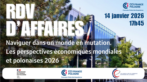 Nous avons le plaisir de vous convier, aux côtés de l’Ambassadeur de France en Pologne, Étienne de Poncins, et d’Olivier Degand, président des CCE Pologne, à notre Rendez-vous d’Affaires de Nouvel An. Retrouvons-nous le 14 janvier à 17h45 à l’Ambassade de France en Pologne pour inaugurer ensemble l’année 2026 sous le signe de nouveaux défis et opportunités.