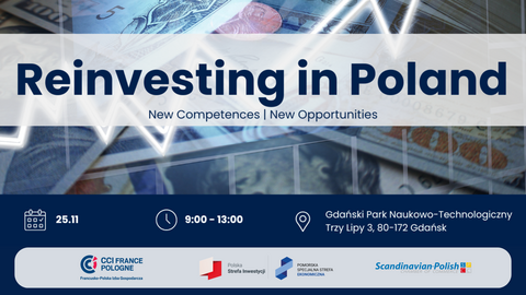 La Chambre de Commerce et d’Industrie France Pologne (CCIFP), en partenariat avec la Chambre de Commerce Scandinavo-Polonaise (SPCC) et la Zone Économique Spéciale de Poméranie, a le plaisir de vous inviter à une rencontre exceptionnelle qui sera l’occasion d’échanger sur les nouvelles opportunités d’investissement, le potentiel et les perspectives de l’économie polonaise, ainsi que de découvrir des success stories inspirantes d’entreprises telles que CEVA Air & Ocean ou ISS.