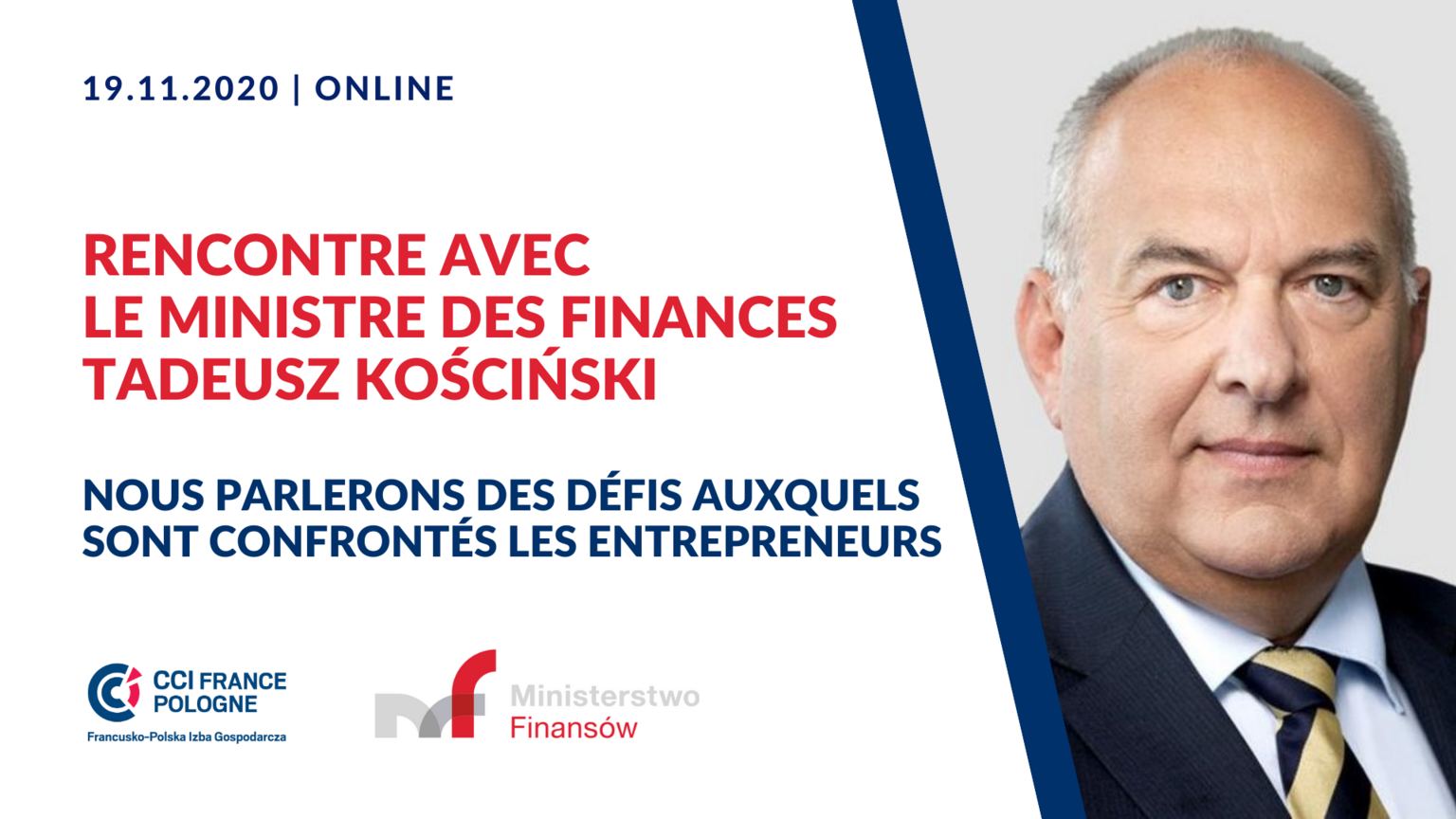 Nous vous invitons cordialement à la prochaine réunion, dont l'invité spécial sera le ministre des finances, Tadeusz Kościński. La réunion aura lieu le 19 novembre de 11h00 à 12h30 par le biais de la plateforme ZOOM. La réunion est gratuite, réservée uniquement à la direction des sociétés membres et se déroulera en anglais.