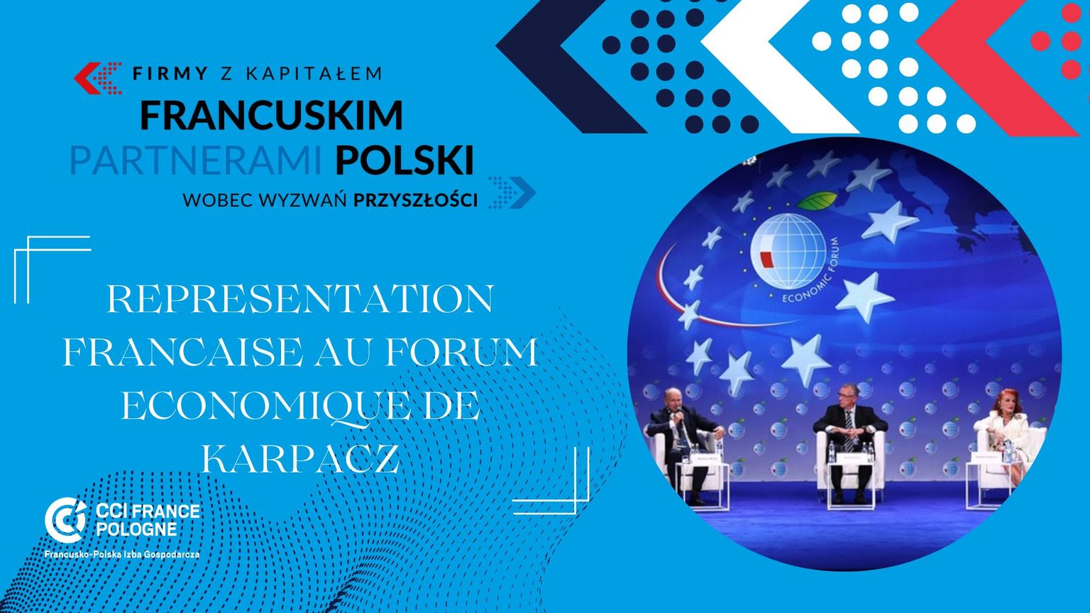 La Chambre de Commerce et d'Industrie France-Pologne sera une nouvelle fois présente au Forum Economique de Karpacz. L'événement aura lieu cette année du 5 au 7 septembre et attirera plus de 4000 représentants du monde des affaires, des présidents, des premiers ministres et des députés polonais et étrangers, ainsi que de nombreux journalistes. Le thème de l'édition de cette année est « Les nouvelles valeurs du vieux continent - l'Europe à l'aube du changement ». Le programme du Forum prévoit plus de 300 événements.