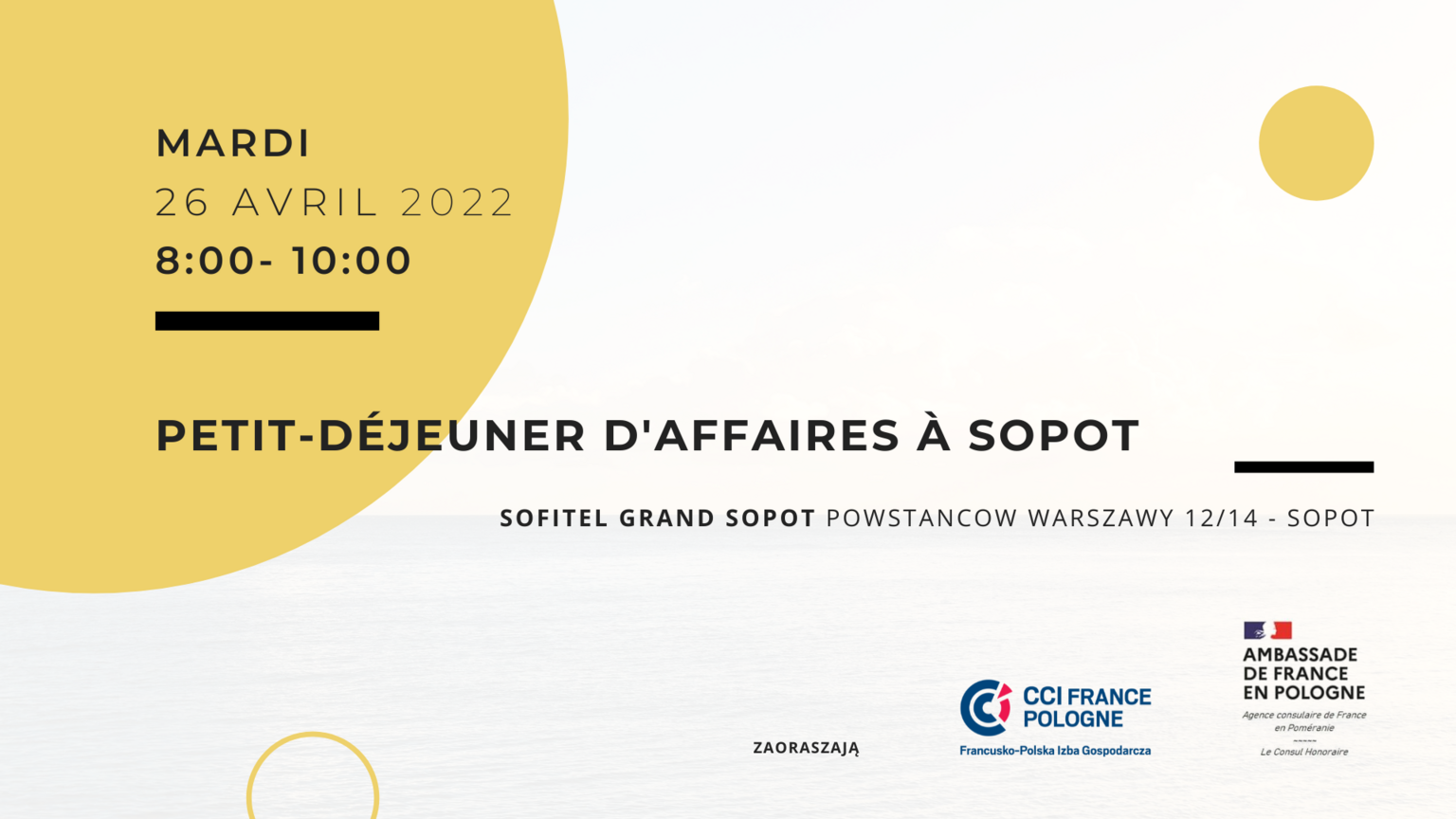 La Chambre de Commerce et d’Industrie France-Pologne et le Consulat Honoraire de France en Poméranie ont le plaisir de vous inviter au prochain petit-déjeuner de la communauté d’affaire franco-polonaises de Poméranie. L'invité de la réunion sera M. Lev Zakharchyshyn, Consul d'Ukraine à Gdansk pour la période 2016-2021.