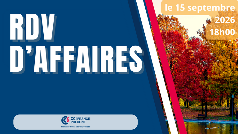 Chambre de commerce et d'industrie France-Pologne CCIFP • WarszawaNous vous invitons à participer à la prochaine édition du RDV d'Affaires – des débats inspirants et un networking de qualité.
