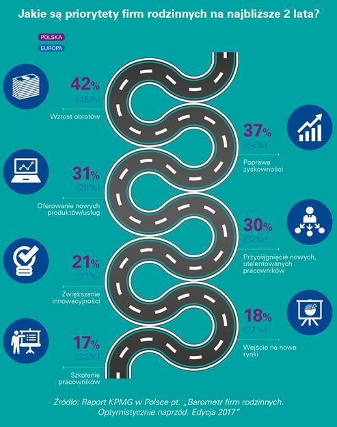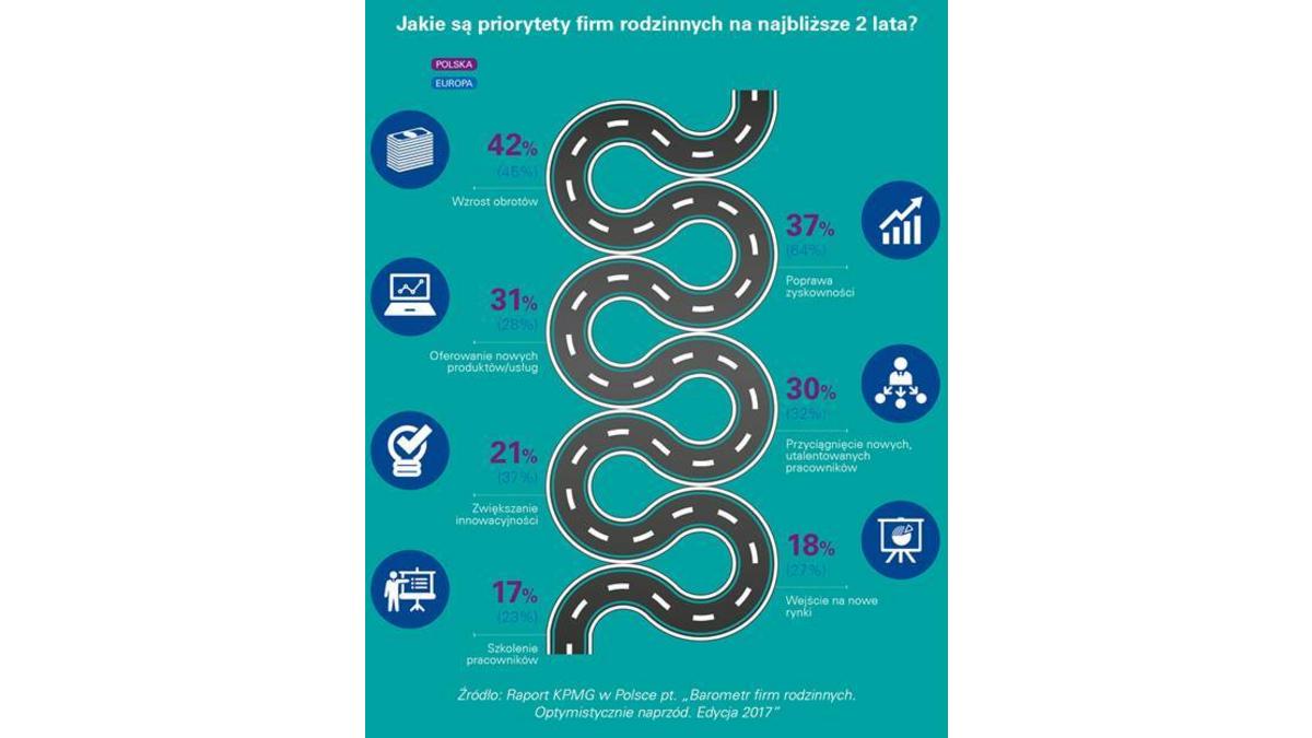 <p style="text-align: justify;"><strong>Przedsiębiorstwa rodzinne w Polsce i Europie są w bardzo dobrej kondycji – zdecydowana większość firm, które wzięły udział w badaniu KPMG, oceniła pozytywnie swoją sytuację ekonomiczną. W ostatnim roku 41% firm w Polsce odnotowało wzrost przychodów. Ustalając priorytety na najbliższą przyszłość, przedsiębiorcy planują skoncentrować się na wzroście obrotów (42%) i poprawie zyskowności (37%). Szczególną uwagę zwracają na odpowiednie formy zarządzania, stawiając na ujednolicone i przejrzyste zasady, pozwalające zachować równowagę pomiędzy więzami krwi a biznesem. Rosnące koszty pracy, polityczna niepewność oraz coraz większa konkurencja na rynku, to główne problemy z jakimi borykają się na co dzień firmy rodzinne. Co trzecia badana firma planuje zwiększyć zatrudnienie.</strong></p>
