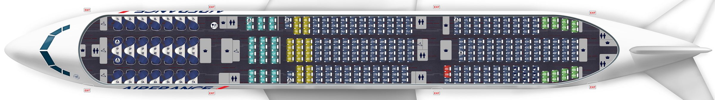 Pasażerowie klasy ekonomicznej podróżuj?cy Air France maj? do wyboru miejsca standardowe oraz kilka typów tzw. „miejsc specjalnych”.