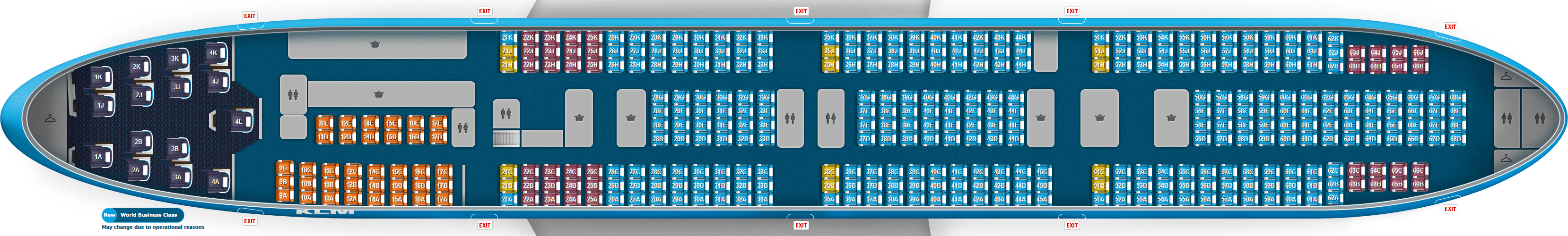 Podobnie jak w Air France, dla lotów KLM wybór standardowego miejsca jest bezpłatny z chwil? rozpoczęcia odprawy (od 30 godzin* przed lotem). Standardowe miejsce można też wybrać wcześniej. Ta usługa jest odpłatna, ale niektórzy pasażerowie s? zwolnieni z opłat. S? to między innymi: posiadacze kart Flying Blue na poziomie Silver, Gold i Platinum, pasażerowie z biletami w taryfie full fare (w pełni modyfikowalne bilety), osoby podróżuj?ce na biletach nagrodowych Flying Blue (Elite), grupy turystyczne.