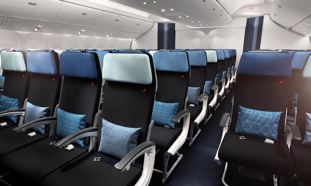 Co nas czeka w kabinie ekonomicznej? Pasażerowie w drodze na wakacje, będą teraz komfortowo podróżować w nowoczesnych fotelach, których ergonomiczne siedziska o szerokości 43 cm zostały wypełnione miękka pianką. Oparcie fotela odchyla się do 118 stopni i jest one miękkim, regulowanym zagłówkiem. Przy każdym fotelu znajduje się indywidualny 11,6-calowy ekran o wysokiej rozdzielczości, słuchawki i port USB. Wymieniono również stoliki, które są teraz większe, dzięki czemu posiłki, czy praca podczas lotu mogą przebiegać w znacznie wygodniejszych warunkach. Całości dopełnia czerwony koc i kolekcja kolorowych poduszek w pięciu różnych wzorach inspirowanych symbolami graficznymi linii.