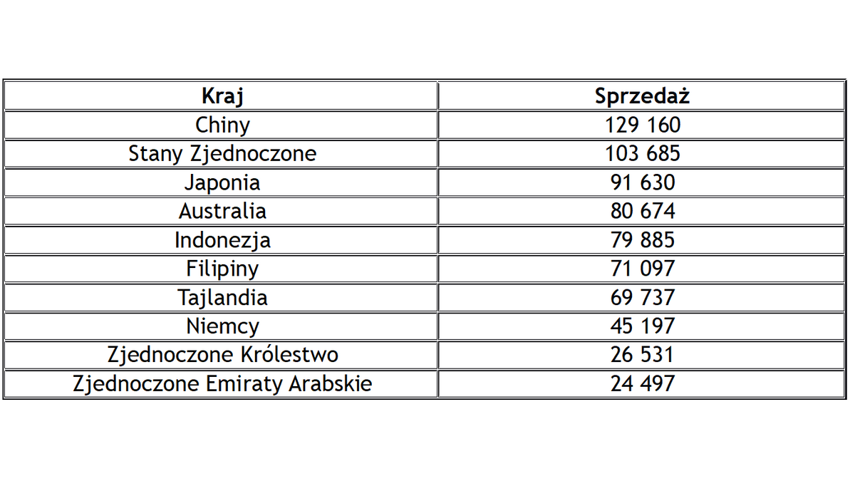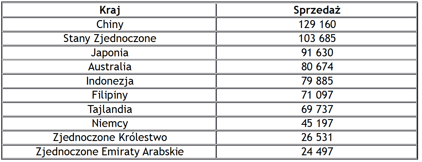 10 największych rynków zbytu Mitsubishi Motors