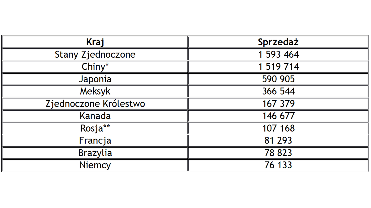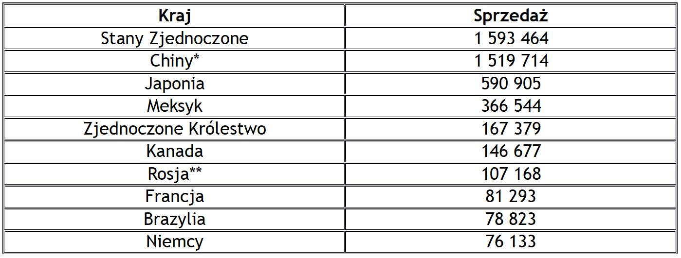 * sprzedaż w 2017 roku, bez Twizy