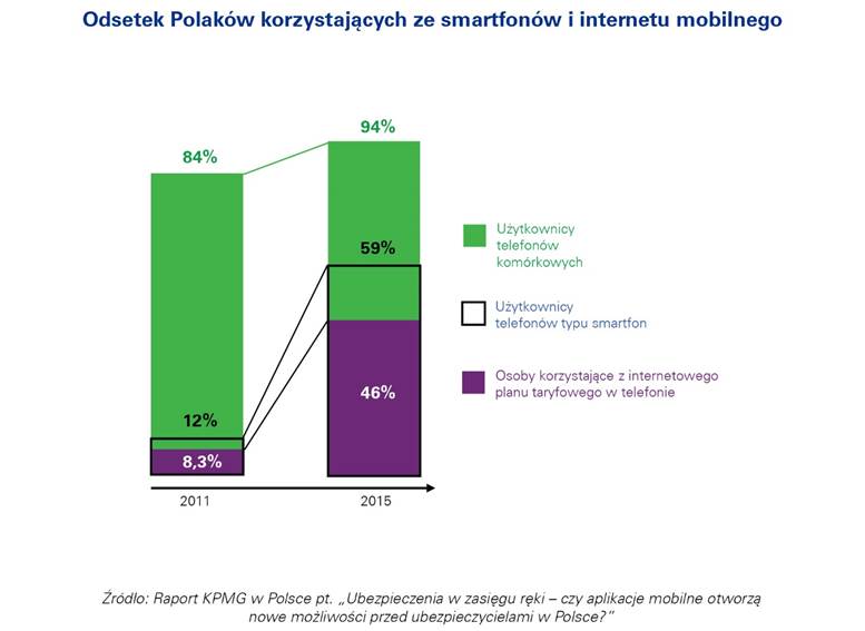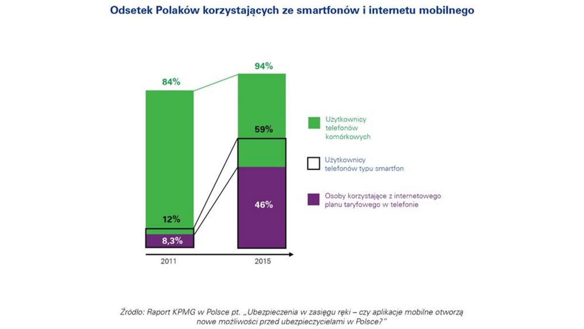 Polacy jako nacja szybko adaptuj? nowe rozwi?zania. W ostatnich kilku latach byliśmy świadkami masowego przejścia konsumentów z telefonów klasycznych na smartfony. W 2015 roku ze smartfonów korzystało już 59% Polaków, a 46% z internetu w planie taryfowym. Od 2011 roku sytuacja uległa radykalnej zmianie, kiedy to ze smartfonów korzystało zaledwie 12% konsumentów, a 8,3% z internetu w planie taryfowym.