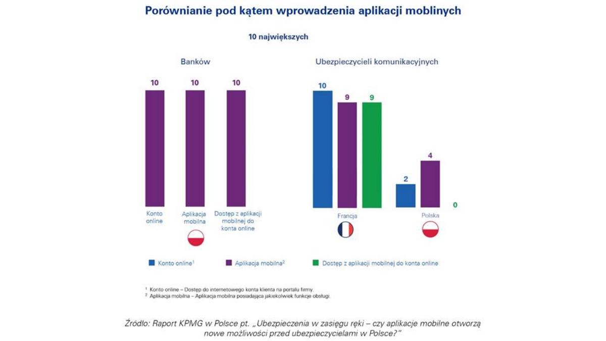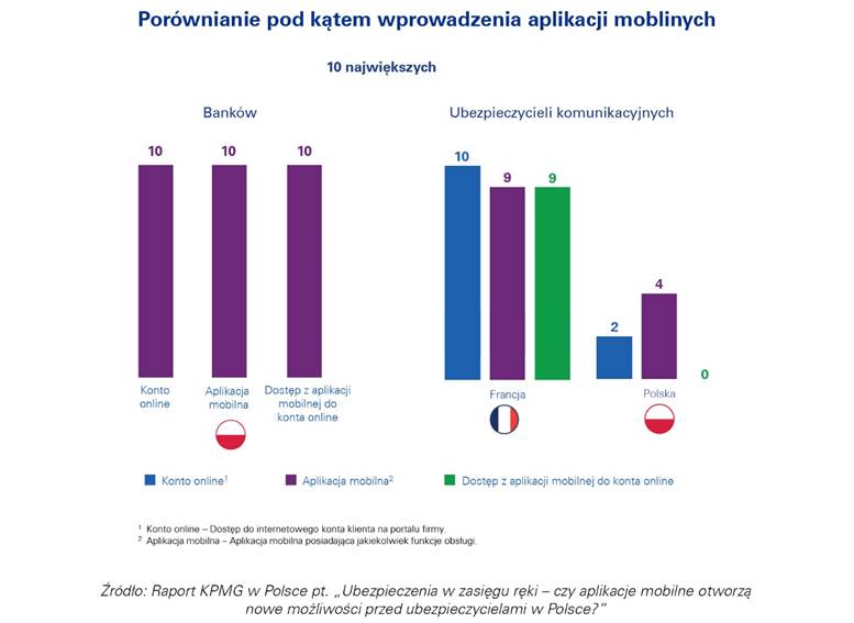 Z 10 największych francuskich ubezpieczycieli oferuj?cych ubezpieczenia komunikacyjne 9 posiada aplikację mobiln? i wszystkie z nich umożliwiaj? dostęp do internetowego konta klienta dostępnego na portalu ubezpieczyciela. Zapewne miała na to wpływ przynależność największych ubezpieczycieli do grup bankowych - ? ? sektora który jest uważany za lepiej rozwinięty technologicznie niż ubezpieczenia. Banki w Polsce s? podawane za przykład innowacyjności w Europie, w zakresie wdrożenia obsługi online i aplikacji mobilnych. Jest wielce prawdopodobne, iż wybrane z nich wykorzystaj? swoje kompetencje w celu poszerzenia działalności na rynku ubezpieczeń - ? ? mówi Piotr Siciak, dyrektor w dziale usług doradczych dla sektora usług finansowych w KPMG w Polsce.