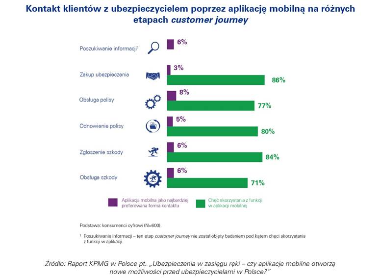 W Polsce konsumenci cyfrowi postrzegaj? aplikacje mobilne w kategoriach gadżetu â ? ? zaledwie dla 6% z nich aplikacja jest preferowan? metod? zgłoszenia szkody, ale jednocześnie tak? możliwość chciałoby mieć aż 84% konsumentów. Tymczasem zgłoszenie szkody i oględziny przez aplikację mobiln? klienta umożliwia znaczn? optymalizację procesu po stronie ubezpieczyciela.