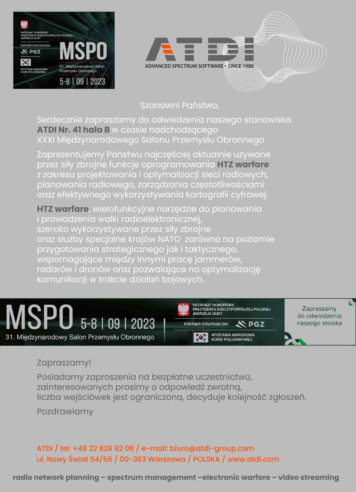 Actus des entreprises ATDI na Międzynarodowym Salonie Przemysłu Obronnego - zaproszenie na stoisko 08/08/2023