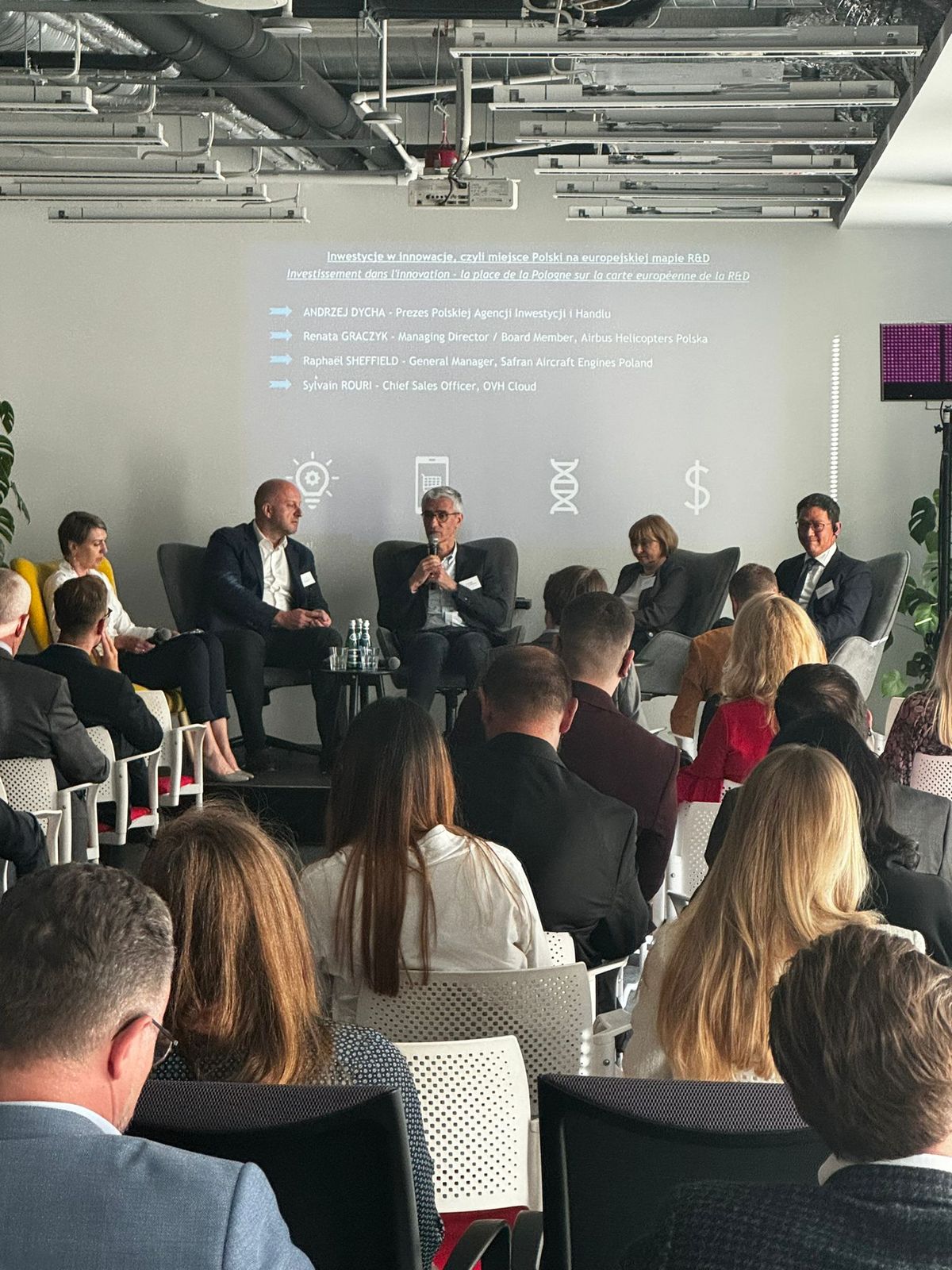 W dalszej części dyskusji firmy podsumowały swoje działania w obszarze R&D w Polsce i mówiły o tym dlaczego wybrały nasz kraj na destynację ich inwestycji. Safran w Polsce tradycyjnie rozwija innowacje związane z materiałami wykorzystywanymi w produkcji i tutaj prowadzi szereg badań. Polska jest ceniona jako miejsce, w którym można realizować projekty szybko i niezawodnie, a także prowadzony jest dialog z administracją, by wspólnie poszukiwać rozwiązań. OVH posiada w Polsce ponad 250 inżynierów, którzy pracują nad rozwiązaniami w zakresie IT i to jest ten obszar, gdzie Polska ma duże kompetencje. Airbus Helicopters otworzył swoje biuro R&D w 2015 roku i od tego czasu nieustannie się rozwija stawiając na ciągłe kształcenie kadr i poprawę ich kompetencji, co przekłada się na realizację coraz bardziej skomplikowanych projektów. Zresztą jeden z elementów śmigłowca Racer został zaprojektowany, przetestowany i wyprodukowany właśnie w Polsce.