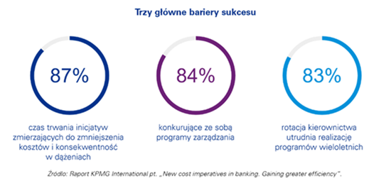Bariery są złożone i często wzajemnie powiązane. Zrozumienie i ustalenie priorytetów dla kluczowych dźwigni kosztowych, jasny obraz horyzontu czasowego w celu osiągnięcia korzyści oraz silnej „kultury kosztów” w banku są krytycznymi czynnikami sukcesu transformacji kosztowej.