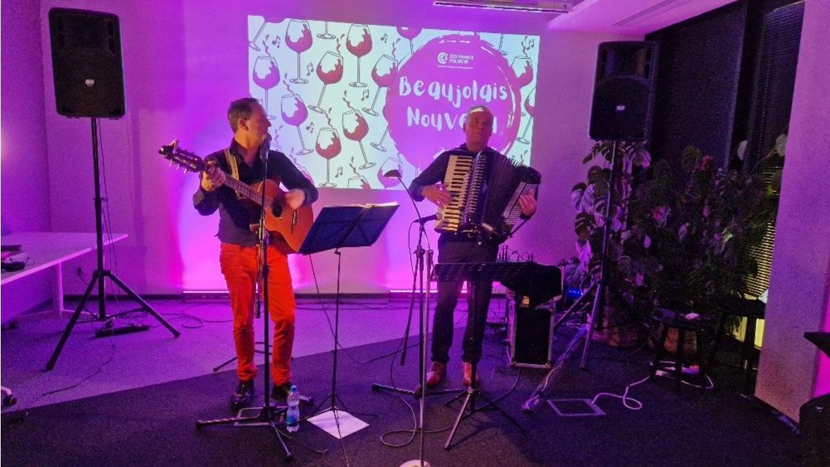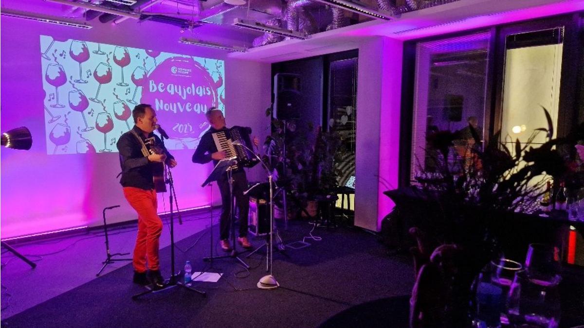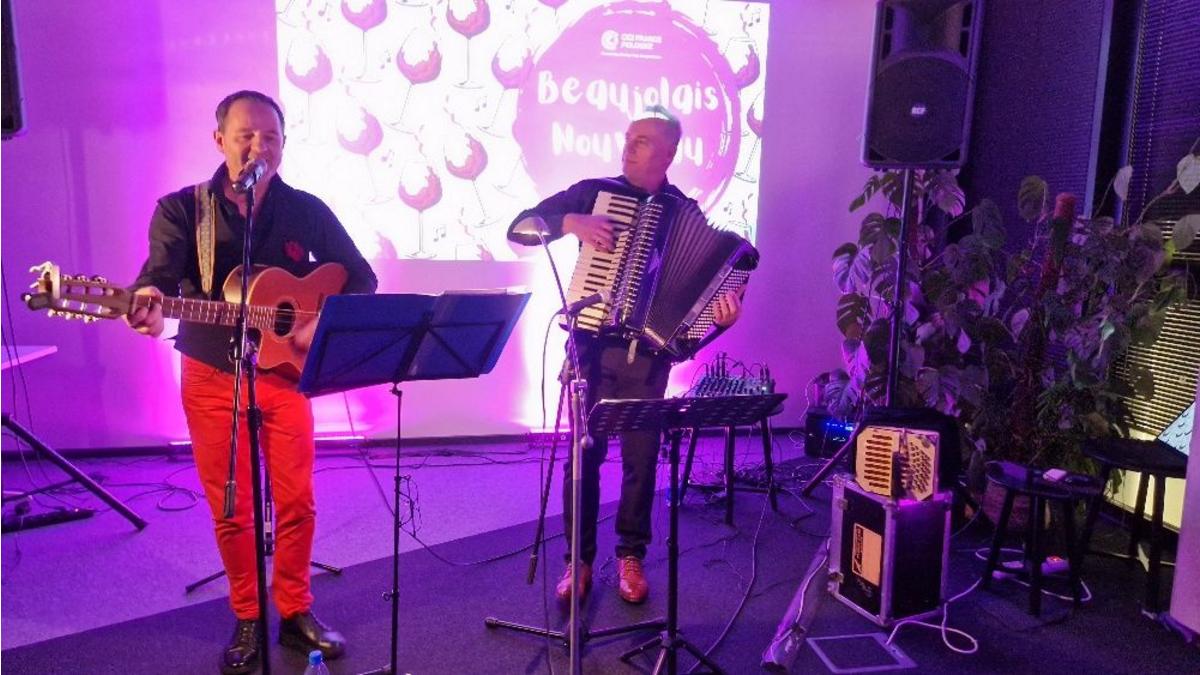 We wtorkowy wieczór, we francuskiej atmosferze zapewnionej m.in. przez dźwięki gitary i akordeonu Chrisa Schittulli i Wiesława Prządka, słuchając nie tylko jednych z najpiękniejszych francuskich utworów, ale również nowych aranżacji polskich piosenek, spotkaliśmy się aby razem świętować i degustować, jak wynika z opinii uczestników- bardzo smaczne młode wino Beaujolais.