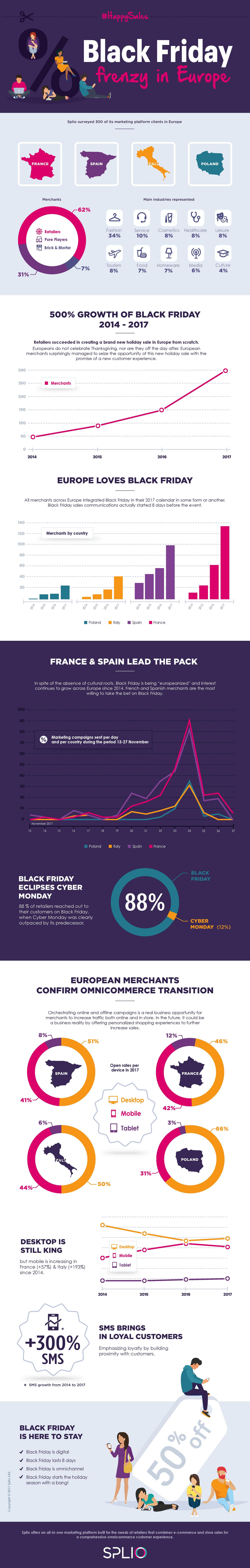 *Splio zbadało 300 klientów swojej platformy marketingowej w Europie w listopadzie 2014, 2015, 2016, 2017